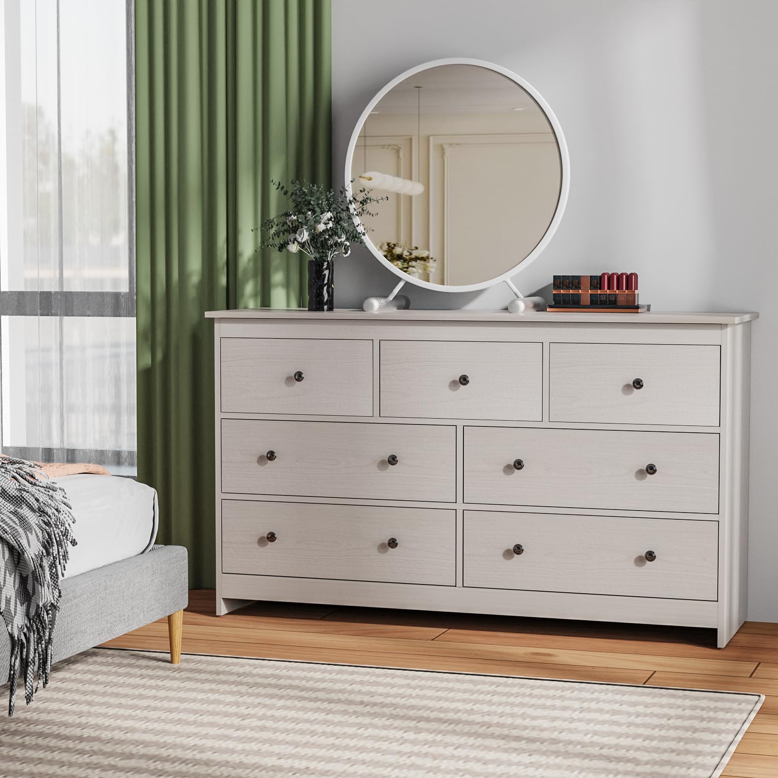 - 7 drawer wooden dresser is made of high-quality particle board for structural stability and long life. The surface is waterproof and scratch resistant, easy to clean and maintain. The bottom of the dresser is sturdily designed and equipped with an anti-toppling device, fully satisfying your quest for quality and safety.