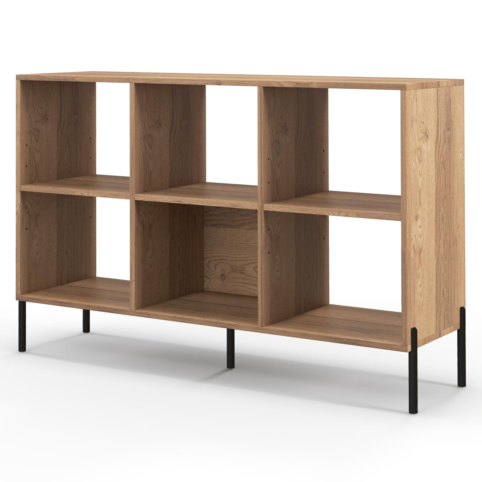 - Featuring 6 spacious open shelves (1 with back panel), this horizontal bookcase provides an easy but effective solution for home or office organizing. Each separate cube is designed for accommodating books, plants, CDs and ornaments, which visibly optimizes the availability of storage space.