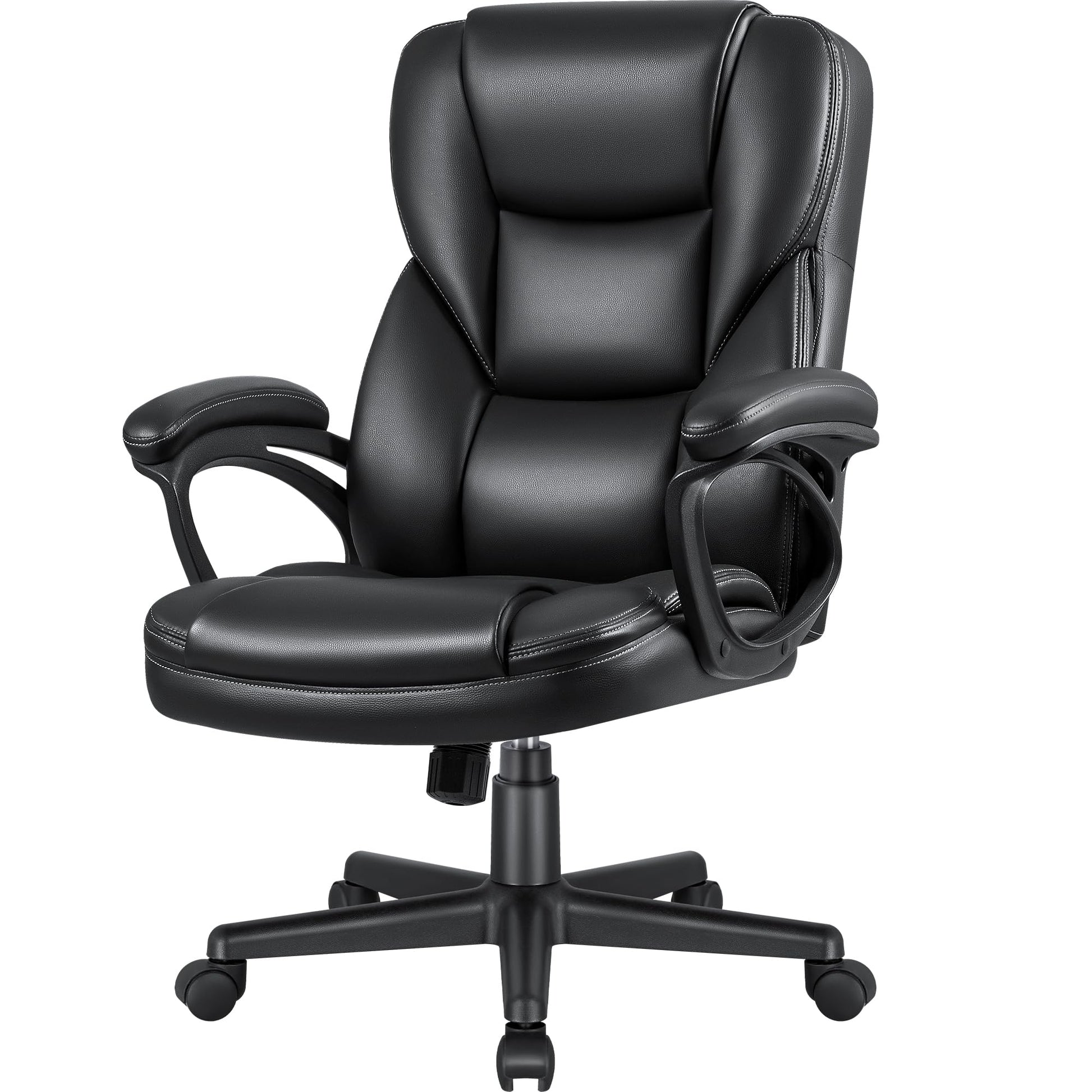 - PU Leather Executive Office Chair: Leather computer chair with soft leather and double upholstered foam seat cushion, upholstered armrests have a premium look and are extremely comfortable, this executive chair will increase your productivity!