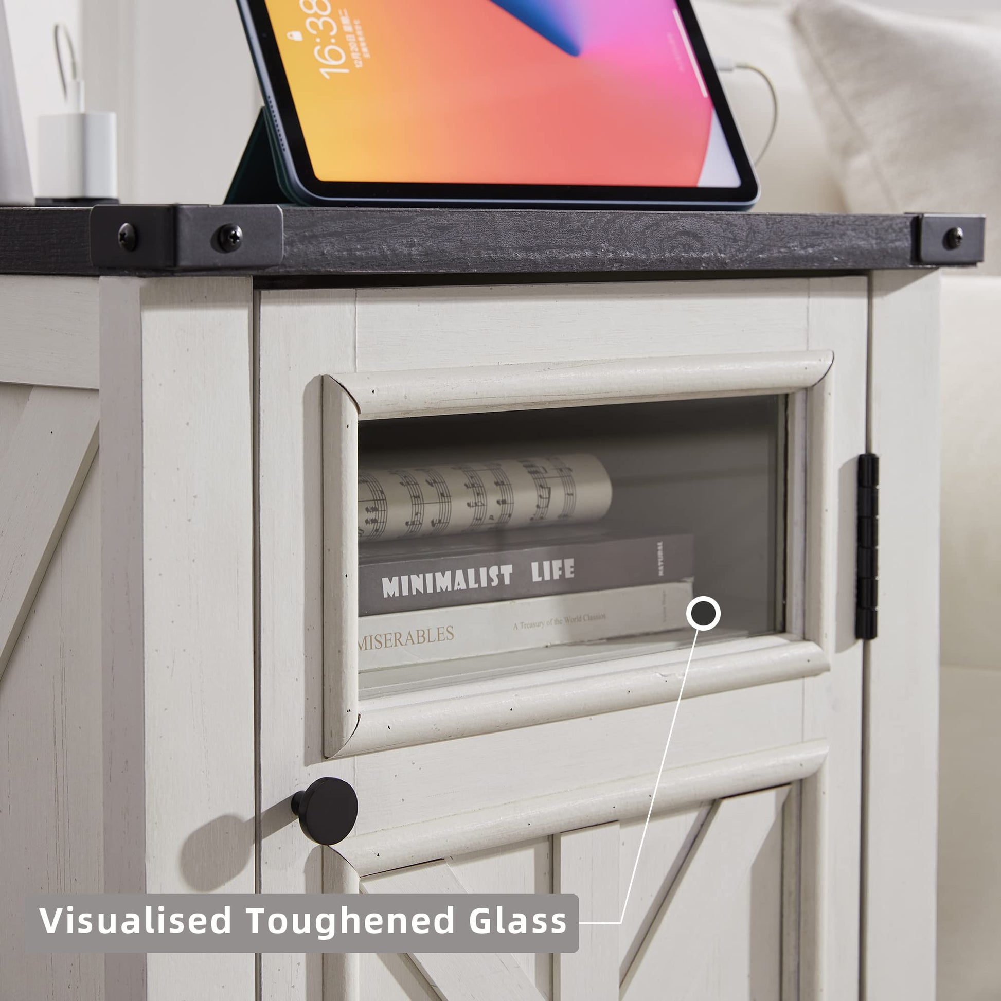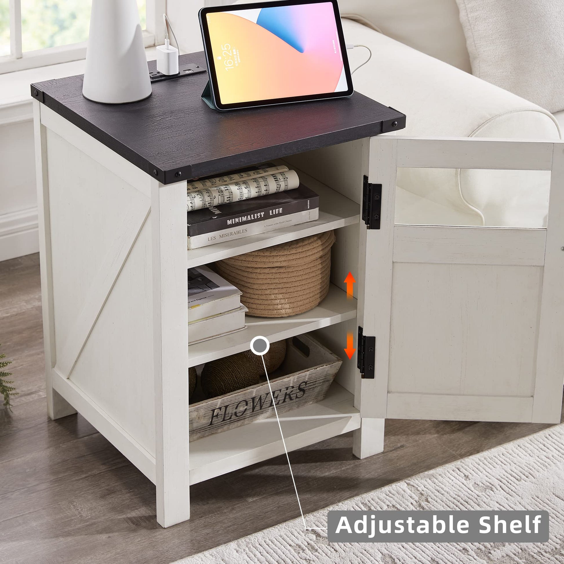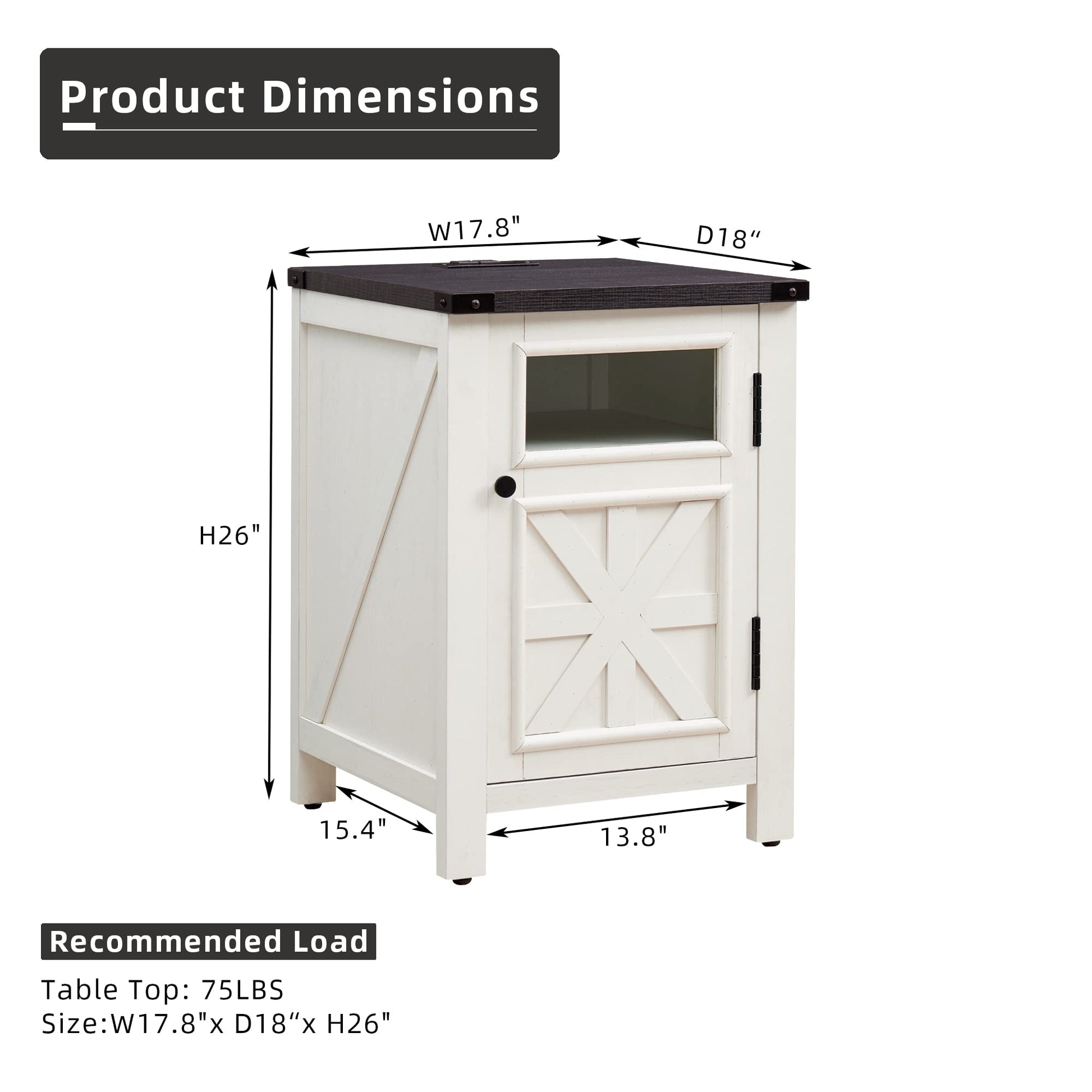 Farmhouse End Table with Charging Station, 18'' Rustic Nightstand