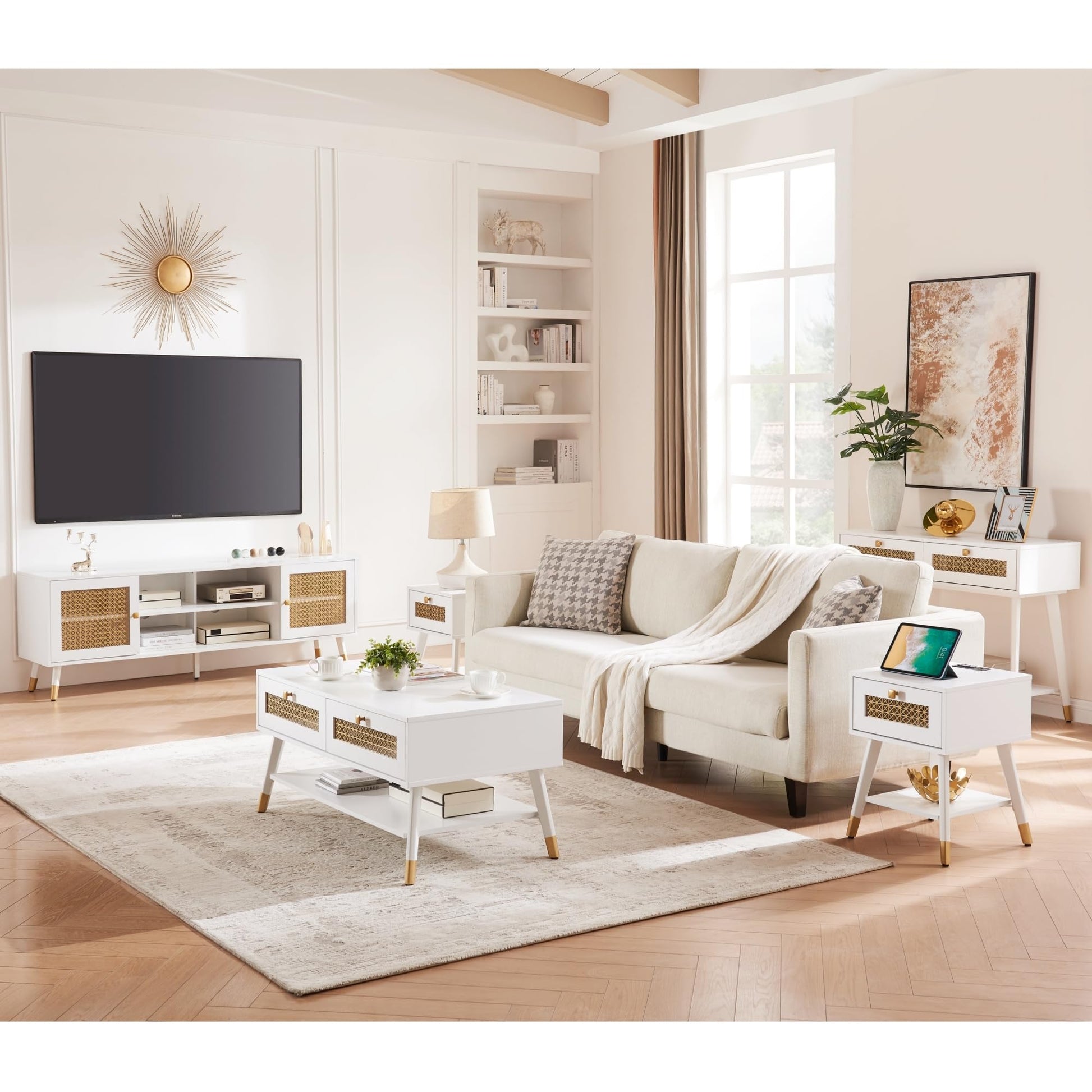 - Design with Metal Mesh Elements: The surface is made of vintage and textured engineered wood,and the storage drawer add a hollow metal mesh decorated elements. The combination of modern and traditional design blends with any style of decor,adding an elegant contemporary charm to your interior space,feel the quality of life in the details.There are four colors to choose,you can feel free to buy them together with other furniture from the same collection according to the color