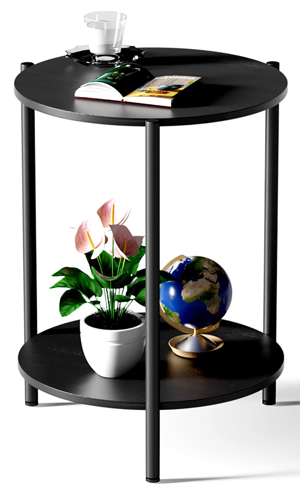 - Kasrikly round side table 2-tier open design, perfect for storing books, magazines, and decorative items. The small table measures 15.75"D*21.46"H and has a total weight capacity of up to 40 lbs.