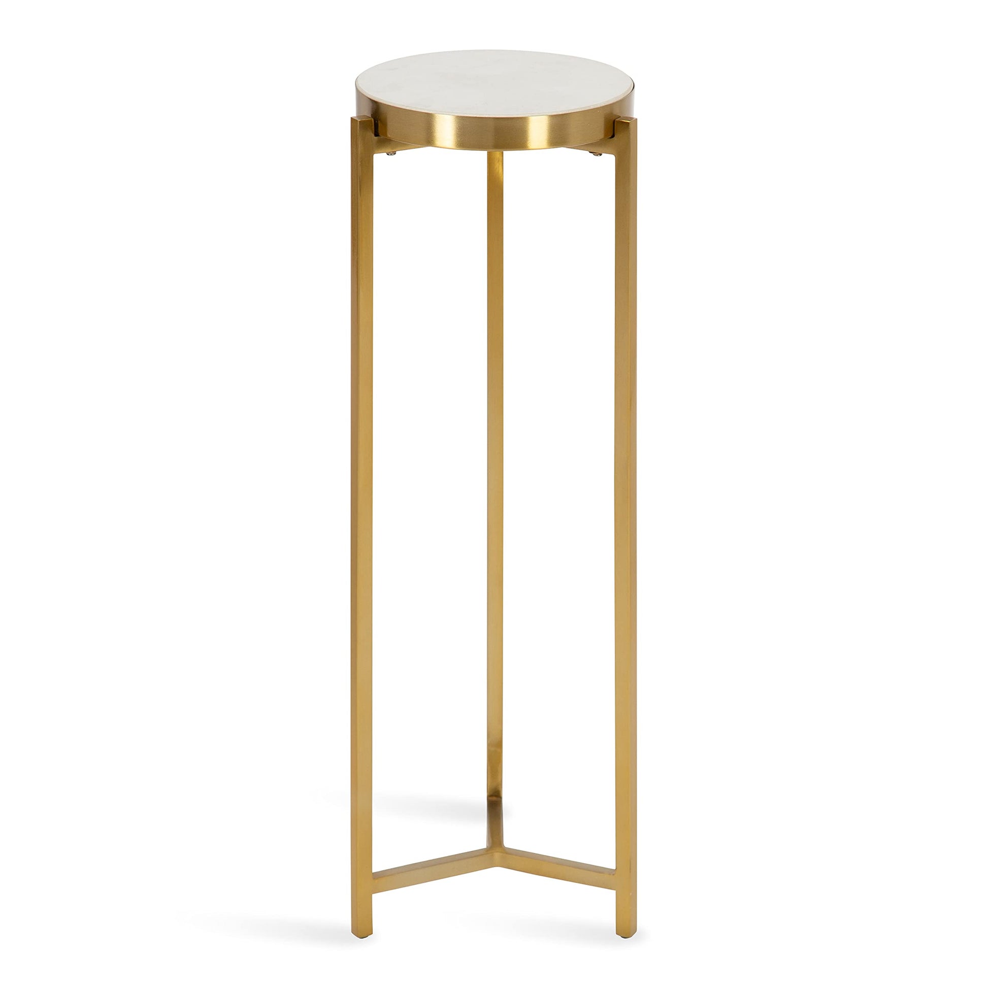 Aguilar Modern Drink Table, 9 x 9 x 23, White and Gold, Genuine Marble Accent Table