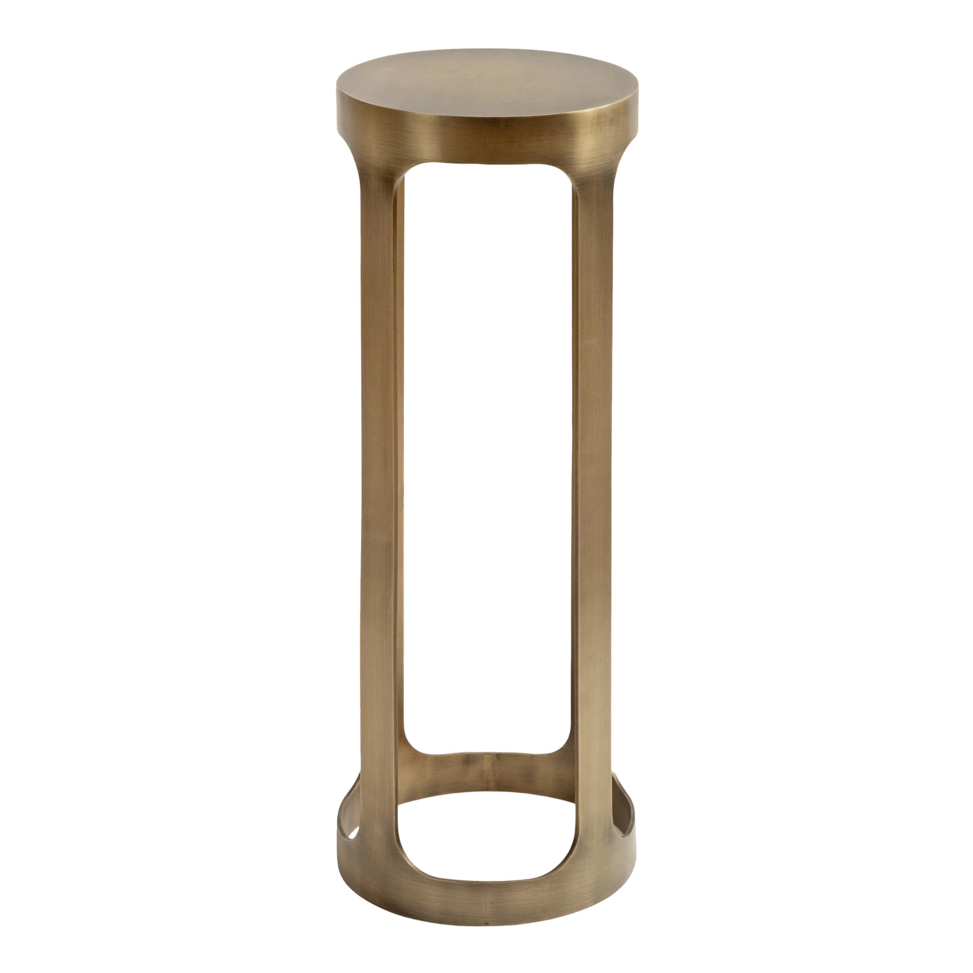 Kate and Laurel Dahl Modern Metal Round Outdoor Drink Table, 8 x 8 x 23, Antique Brass, Circle Accent Pedestal Patio Mini Table for Use as Living Room Plant Stand or Small Bedroom Nightstand