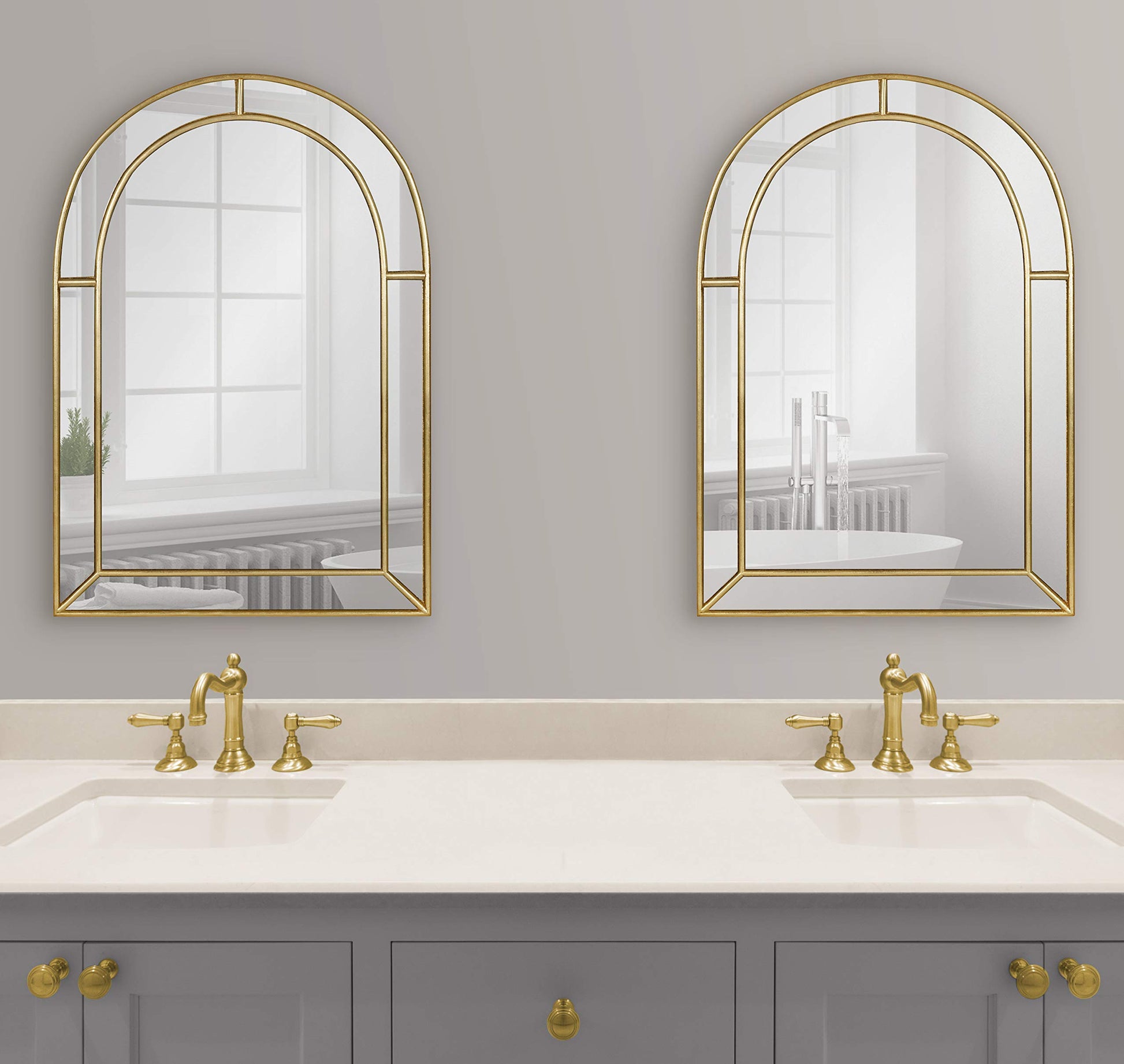 - REFINED LOOK: This elegant wall mirror has an arched shape with a segmented overlay surrounding the glass that breaks up the visual presentation and adds intrigue to the overall look