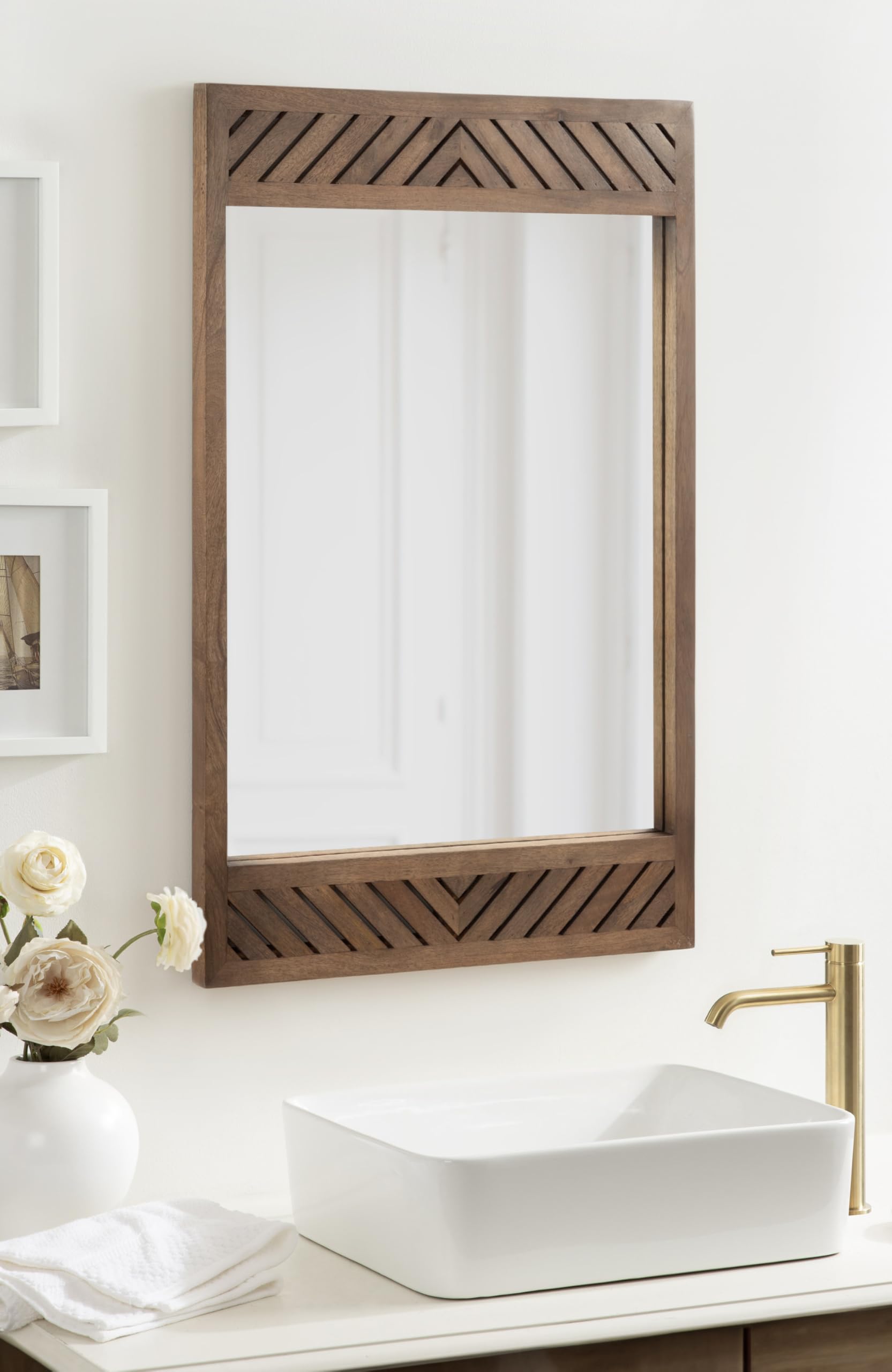 - Chevron Mirror Design: At the top and bottom of this rectangle mirror is a geometric herringbone design to add some dimension and texture to your wall decor