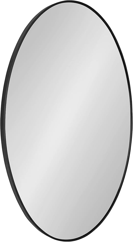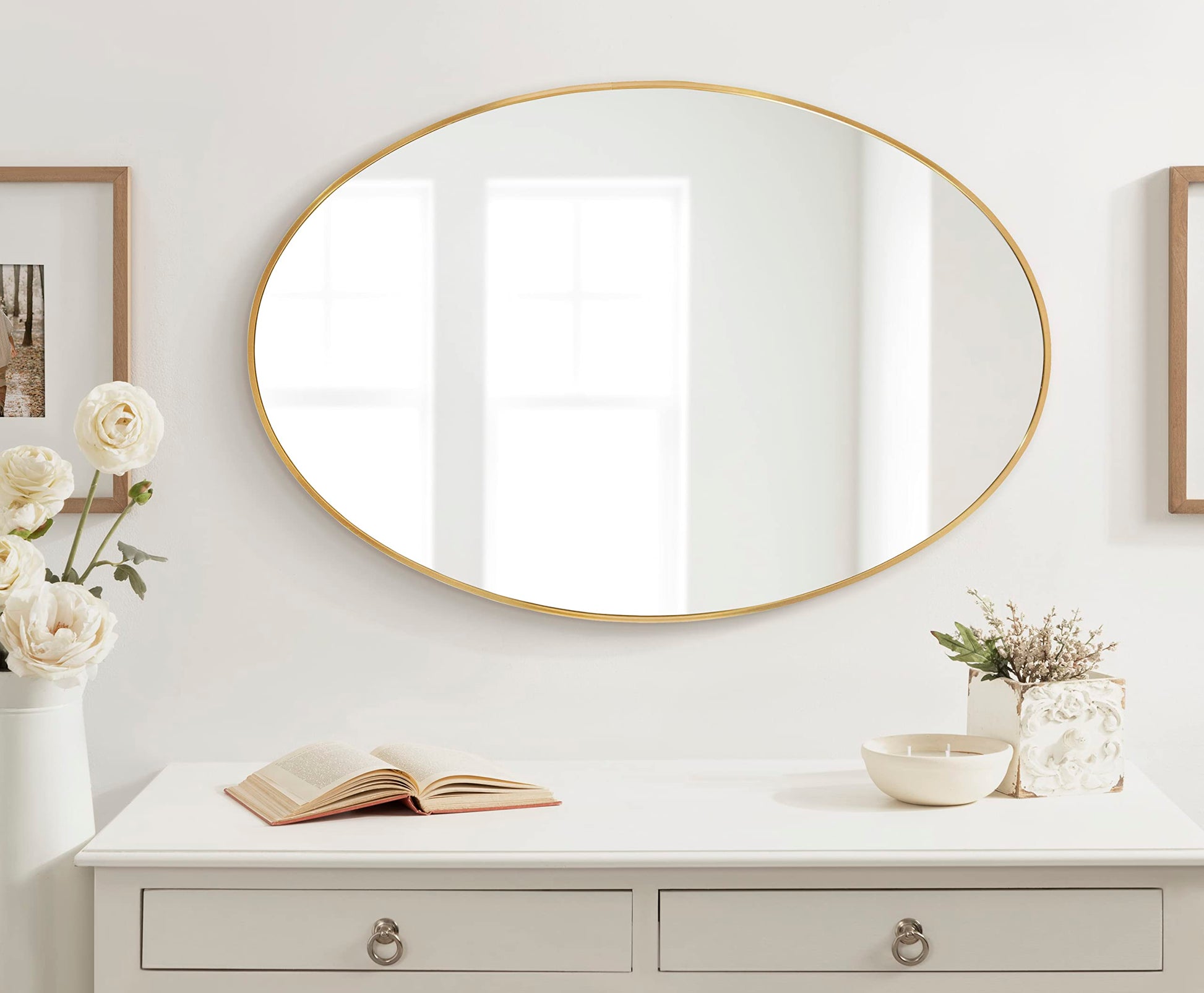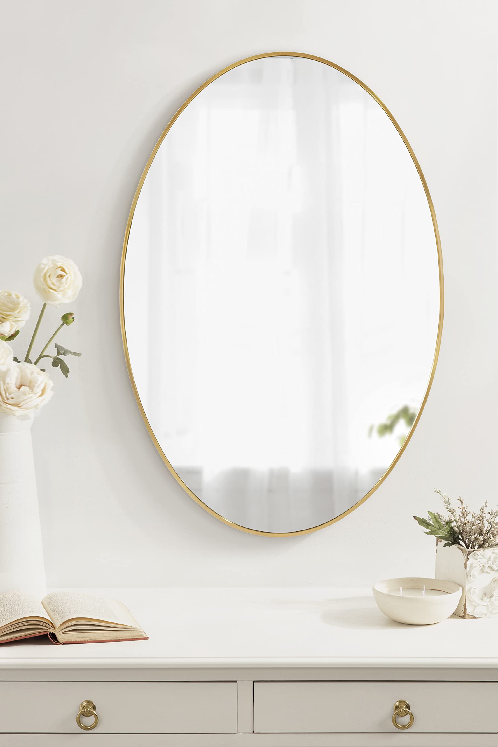 Zayda Modern Traditional Oval Framed Wall Mirror, 24 x 36, Gold, Metal Minimalist Glam
