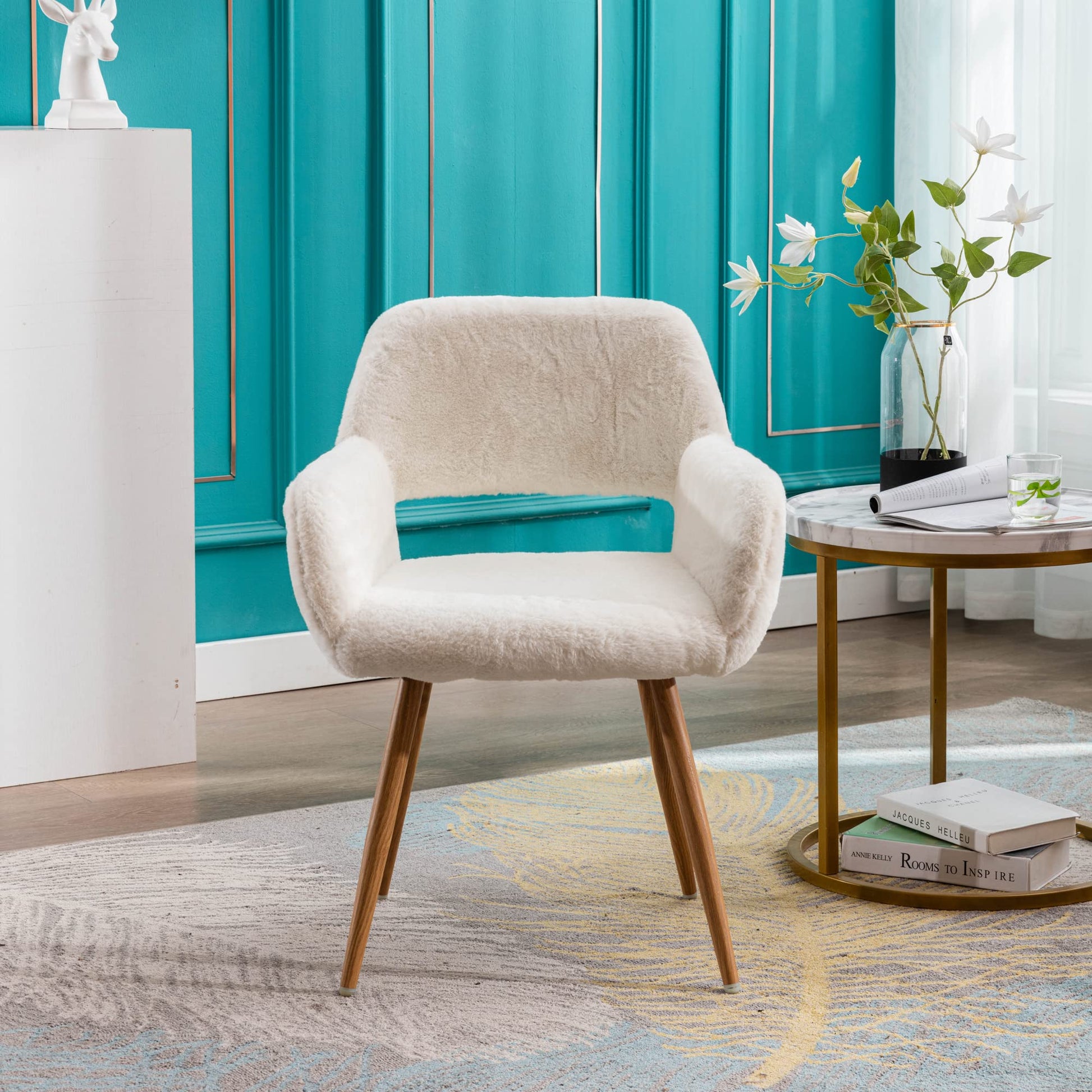 Furry Desk Chair, Mid-Century Modern Accent Comfy Armchair with Faux Fur for Teen Girls