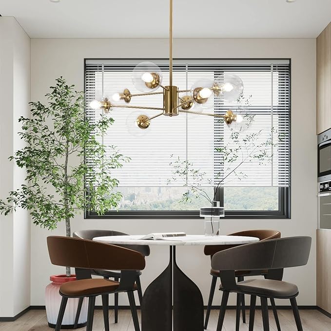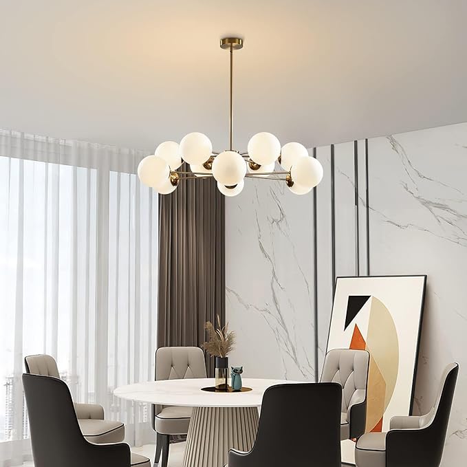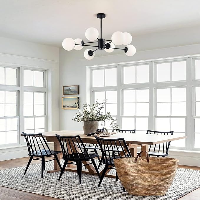 - Modern & Retro Style: The globe chandelier adopts high-transmittance glass material, creates a modern and vintage atmosphere. The 8 glass globe design gives a beautiful and luxurious visual enjoyment. Suitable for the kitchen island, coffee shop, bar or dining room and office