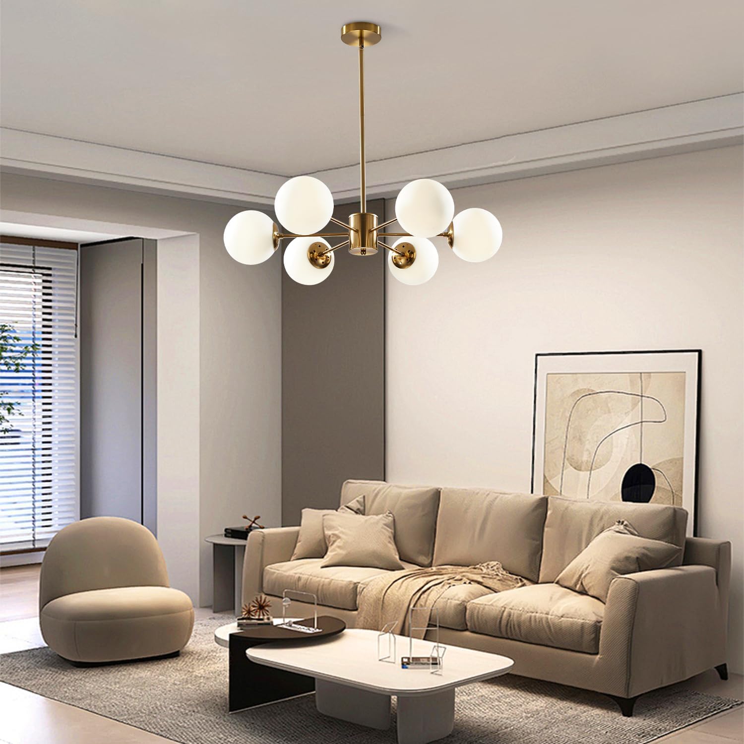 Light Globe Sputnik Chandelier Milk Glass Modern Gold Chandelier Light Fixture
