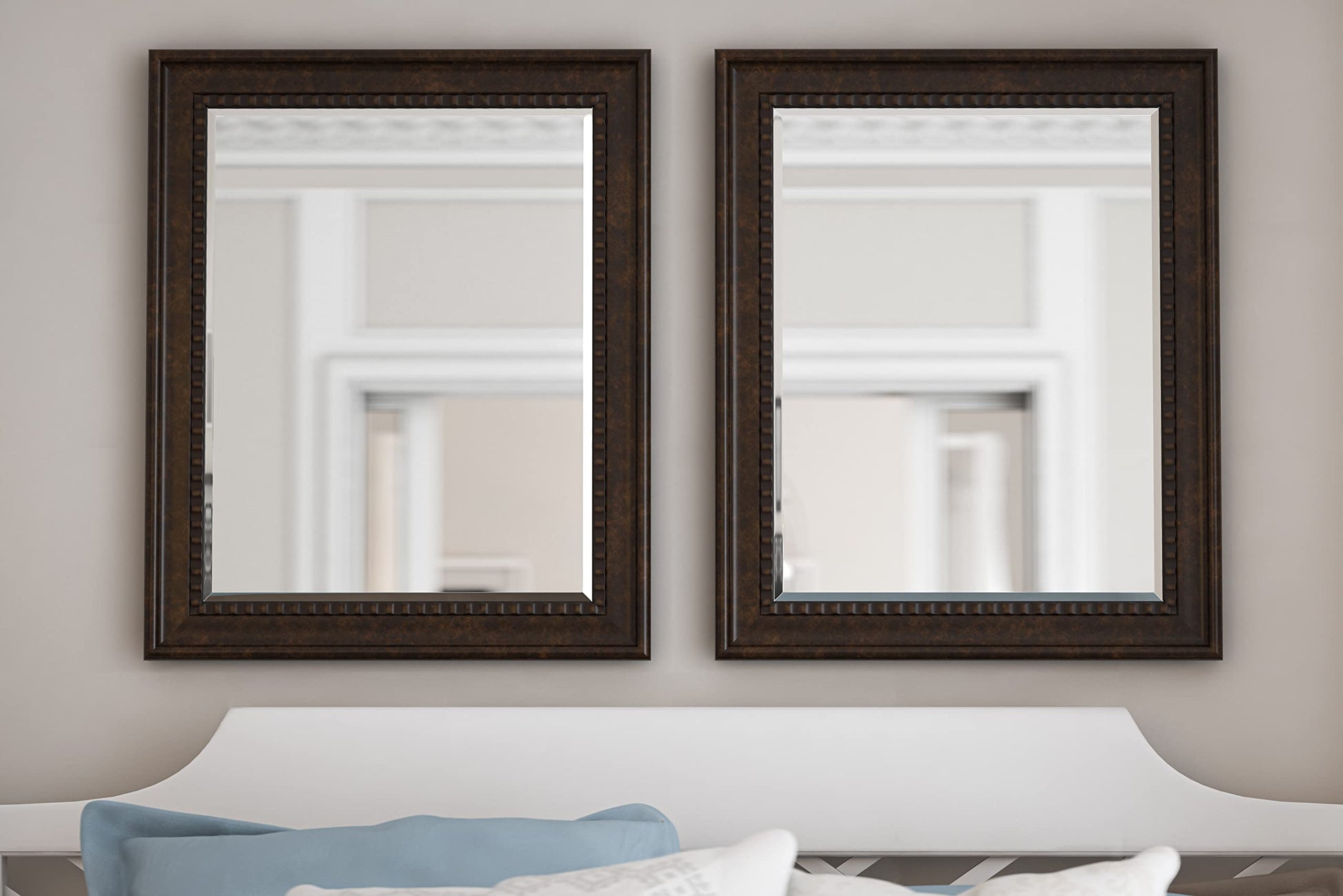 - Wall Mirror Décor: Featuring a lean rectangular wooden frame with a bronze finish and antique gold highlight, this decorative mirror is the perfect addition to any entryway, bathroom, bedroom, or living room