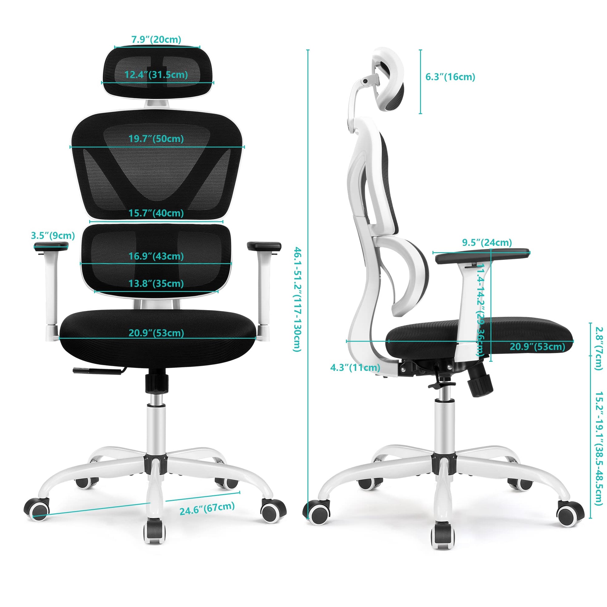 - The ergonomic chair provides 4 support points (head/back/buttocks/hands) and proper lumbar support. The seat height, headrest and backrest can be easily adjusted to meet different needs. Suitable for people about 5'4" to 6'4".