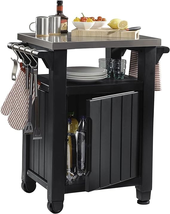 - Handy transport cart: A versatile outdoor bar cart is an ideal and practical outdoor accessory that can be used as a BBQ grill cart, outdoor bar, serving cart, or prep table