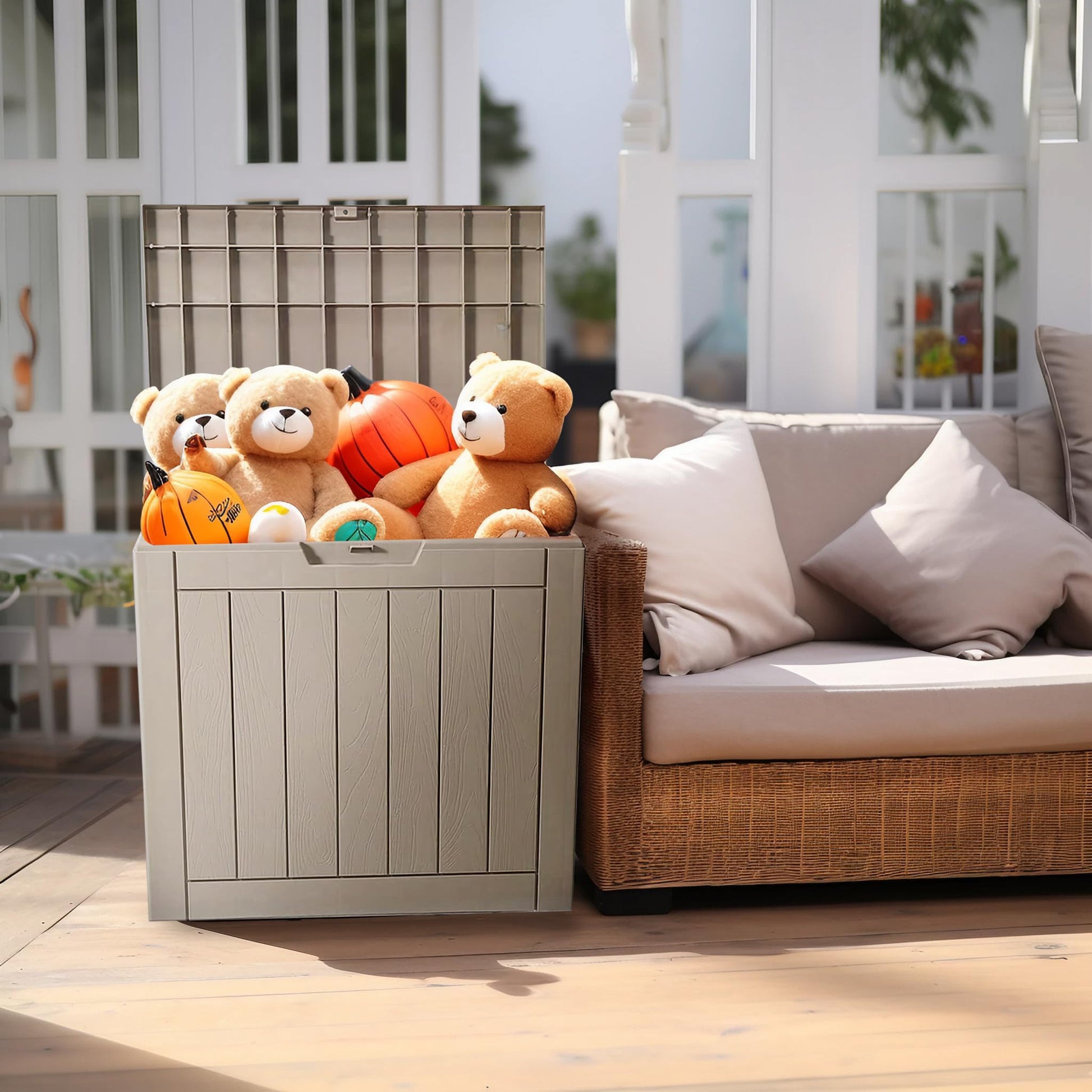 - ๐๐จ๐ฆ๐ฉ๐๐๐ญ, ๐๐ฎ๐ญ ๐๐๐๐ค๐ฌ ๐ ๐๐ฎ๐ง๐๐ก:Though sleek, our deck box offers ample storage for patio cushions, pool toys, and more, elevating your outdoor patio decor.