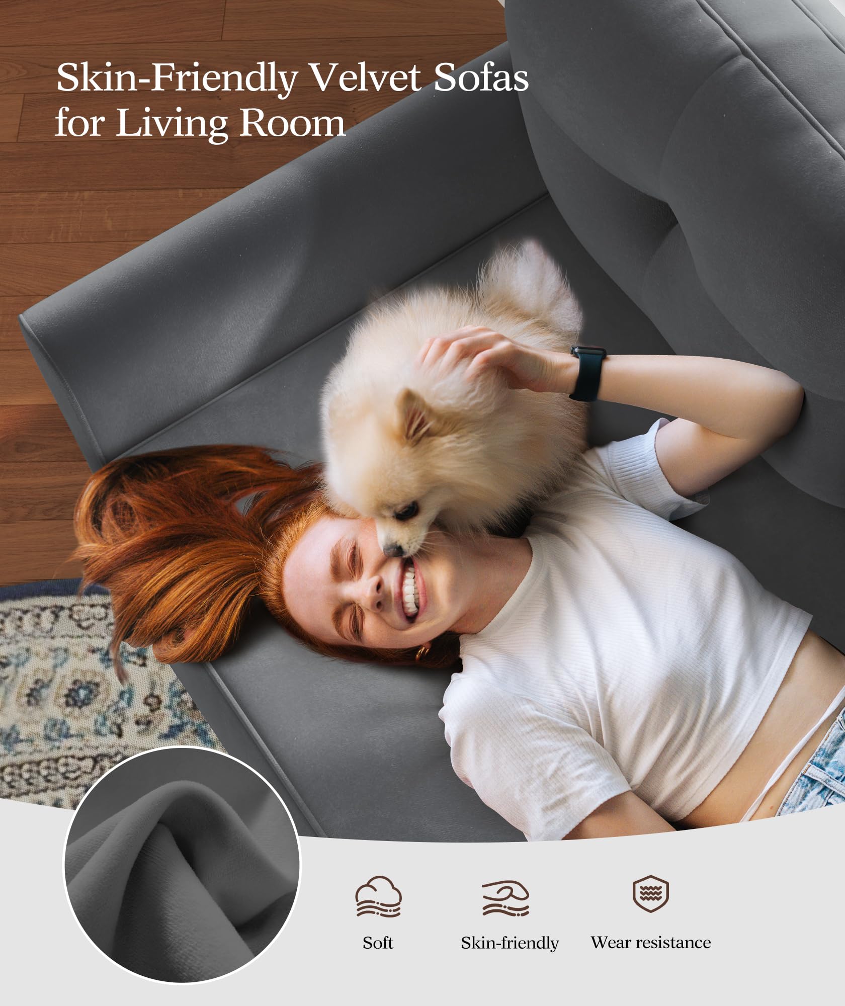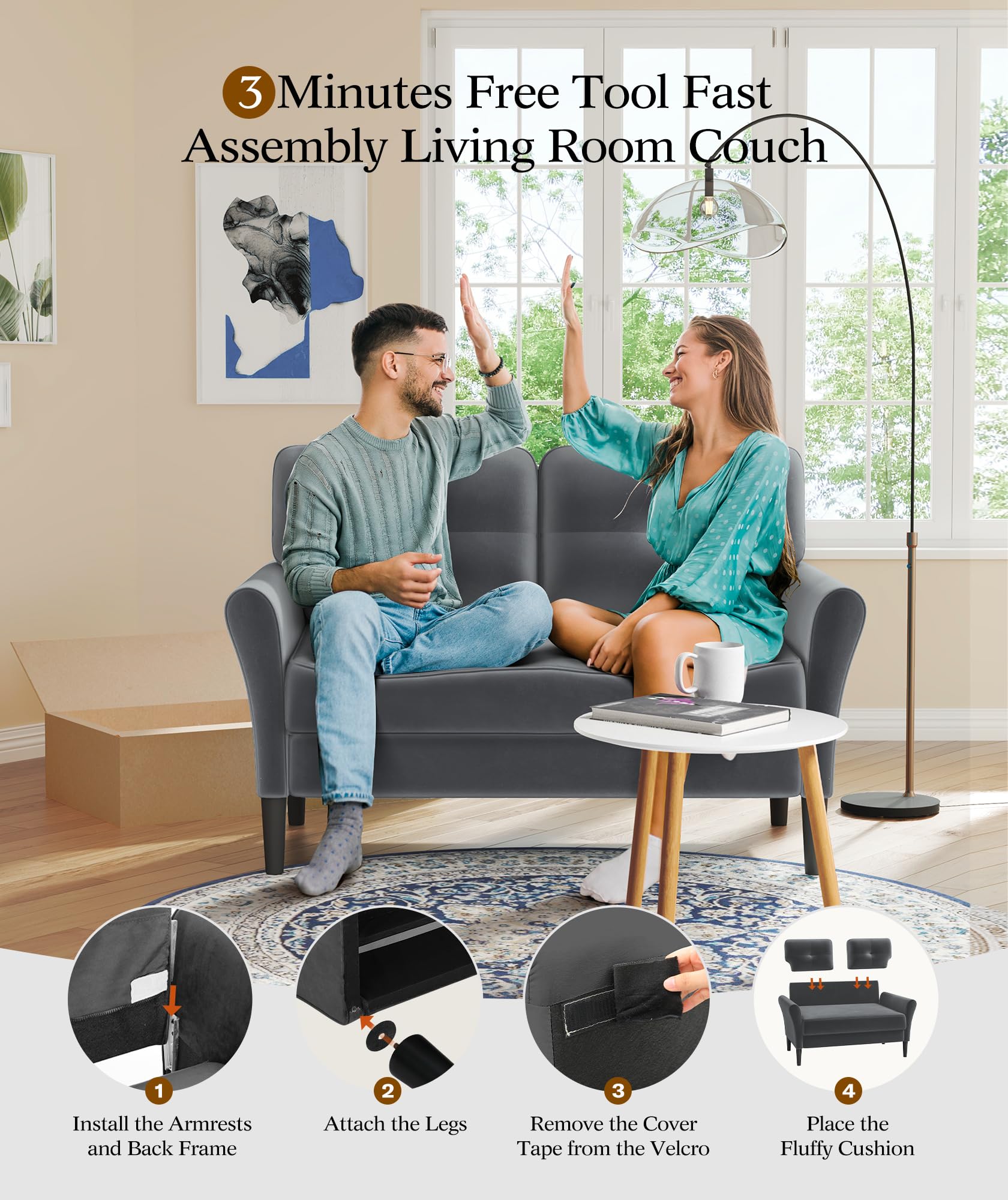 - Indulge in the luxurious softness of our velvet small couch. The plush fabric is as cozy as snuggling up to a furry pet, and its durability ensures long-lasting comfort. Whether it's a chilly winter evening or a hot summer day, this mini couch will make you feel warm and relaxed. You'll feel like you're being embraced by a loved one. Treat yourself to a pleasant leisure time on our sofa. The small loveseat is the perfect gift for anyone who appreciates comfort and style.