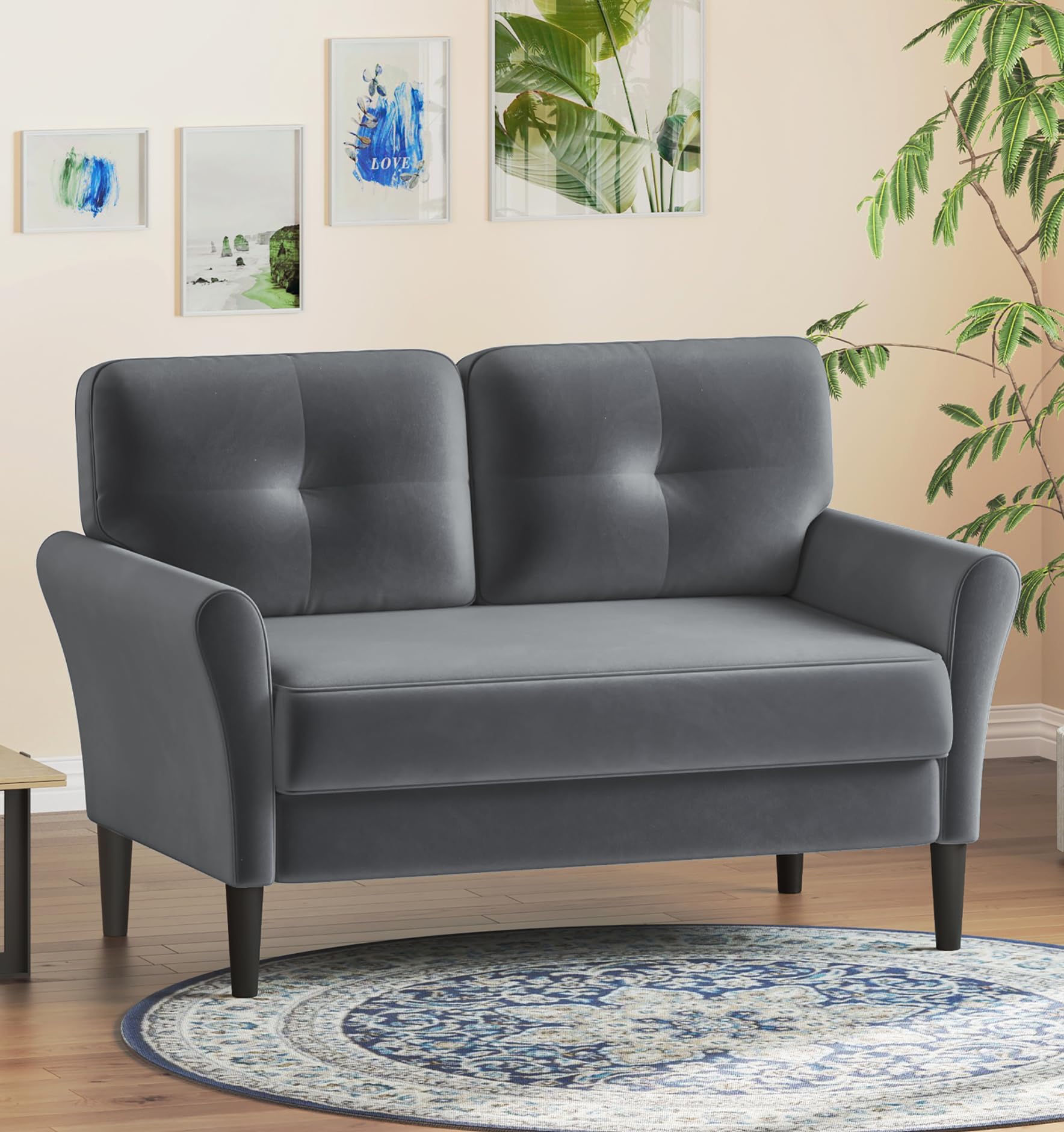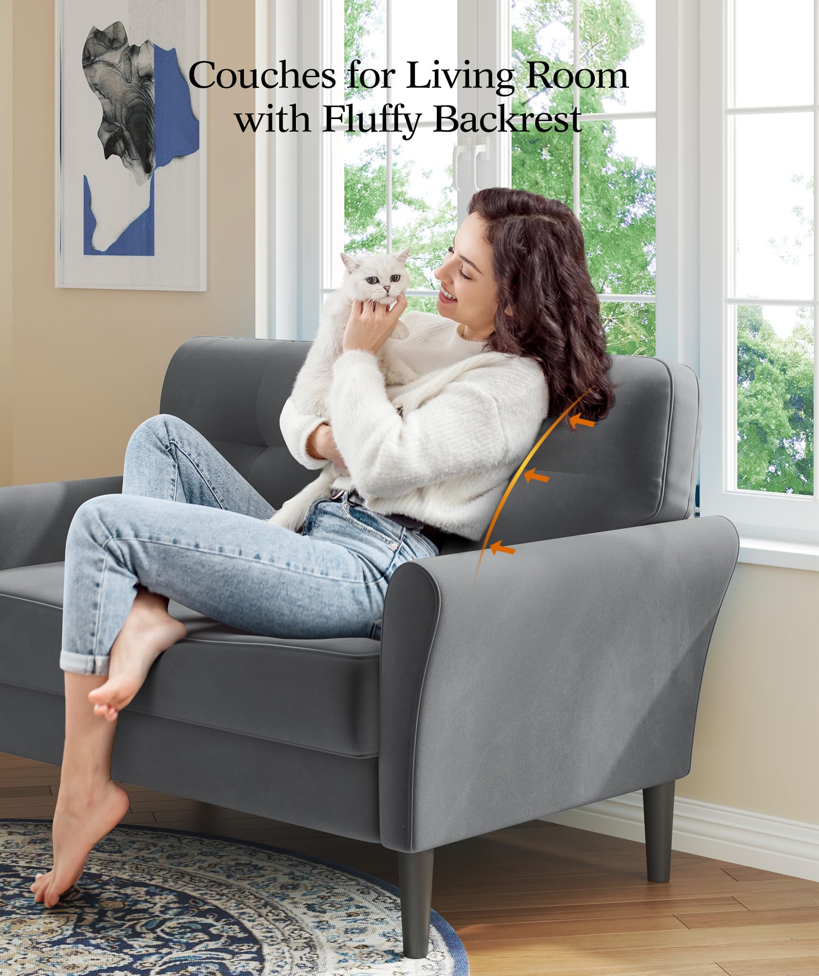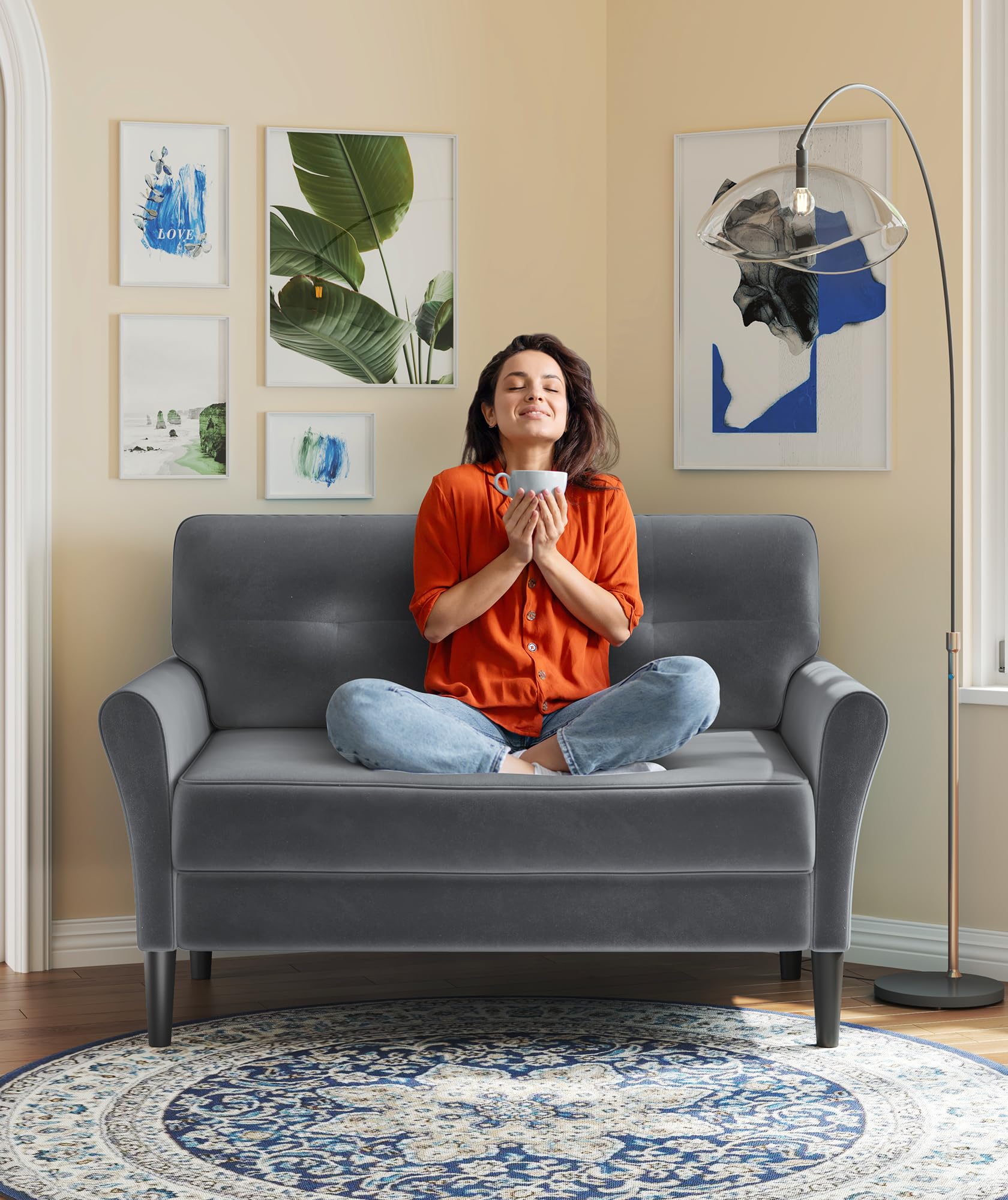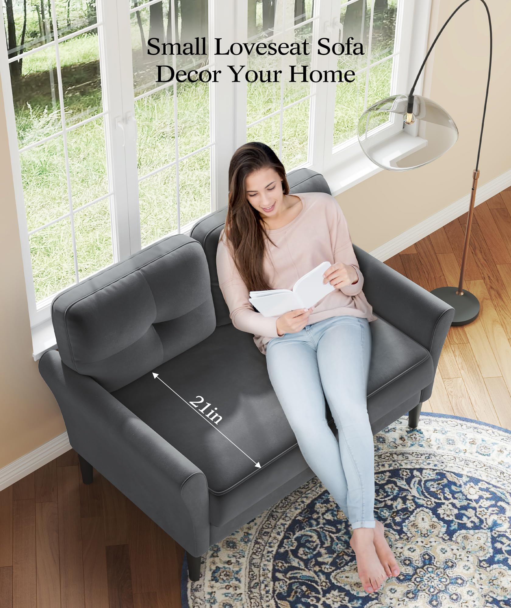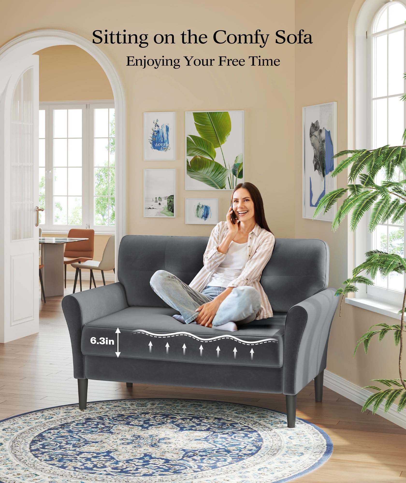- Kidirect grey small loveseat sofa is designed with your comfort in mind. The 6.3" spring seat cushion provides excellent support and elasticity for your body. The loveseat sofa's filling density reaches 32D, which is incredibly fluffy and evenly releases pressure, ensuring long-lasting comfort without collapsing. The 18” high backrest and 21" seat depth provide extra support and lumbar comfort, allowing you to watch programs, chat, and play games in complete relaxation.