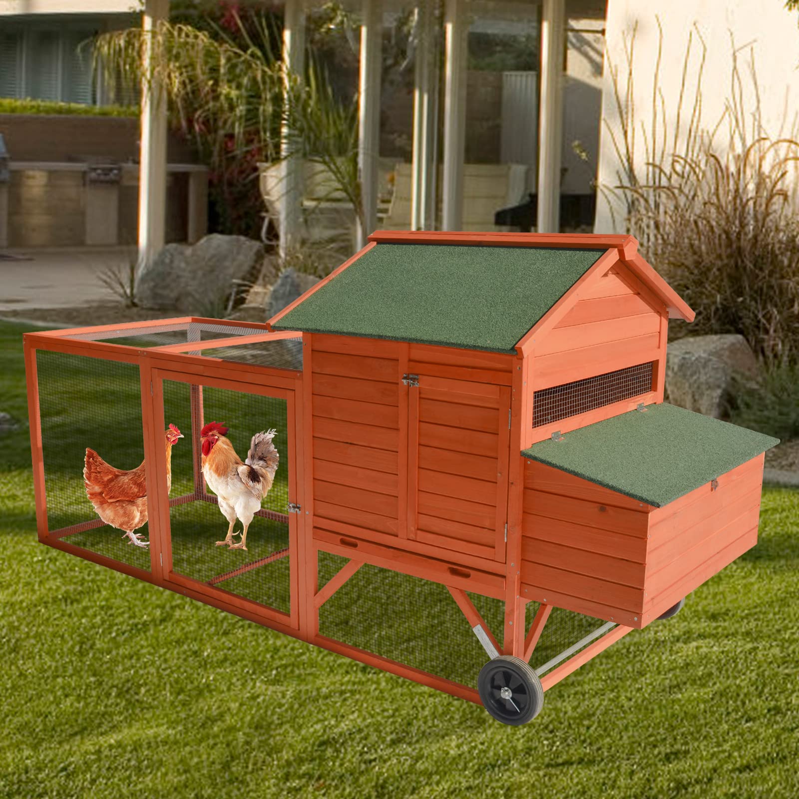 Chicken Coop Hen House - 96in Wooden Poultry Cage with Wheels