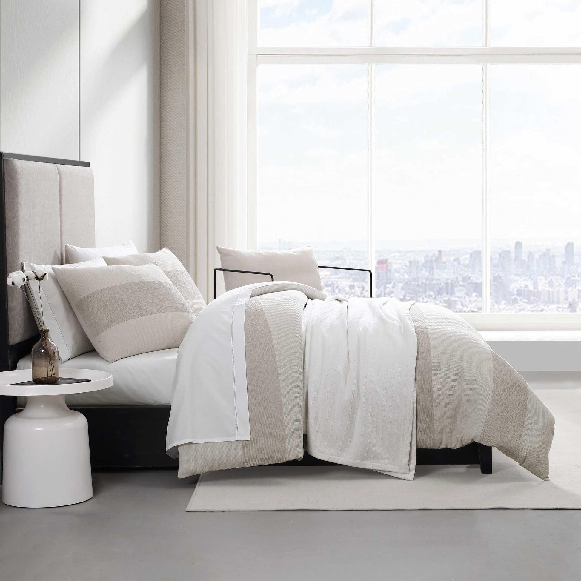 King Size Comforter Set - Textured Chenille Waffle Stripe Beige