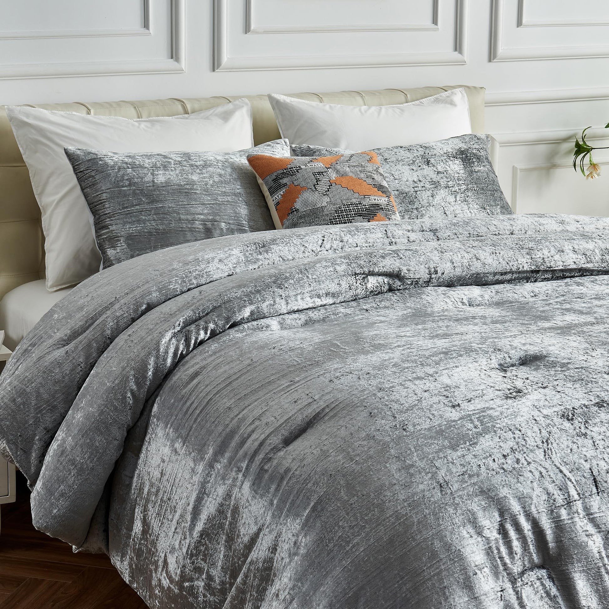 Transform your bedroom into a luxurious retreat with this premium Korean velvet comforter set. Featuring a distinctive crushed crinkled texture, this all-season bedding combines sophisticated style with exceptional comfort. The lightweight microfiber construction ensures year-round versatility while maintaining a plush, soft feel.