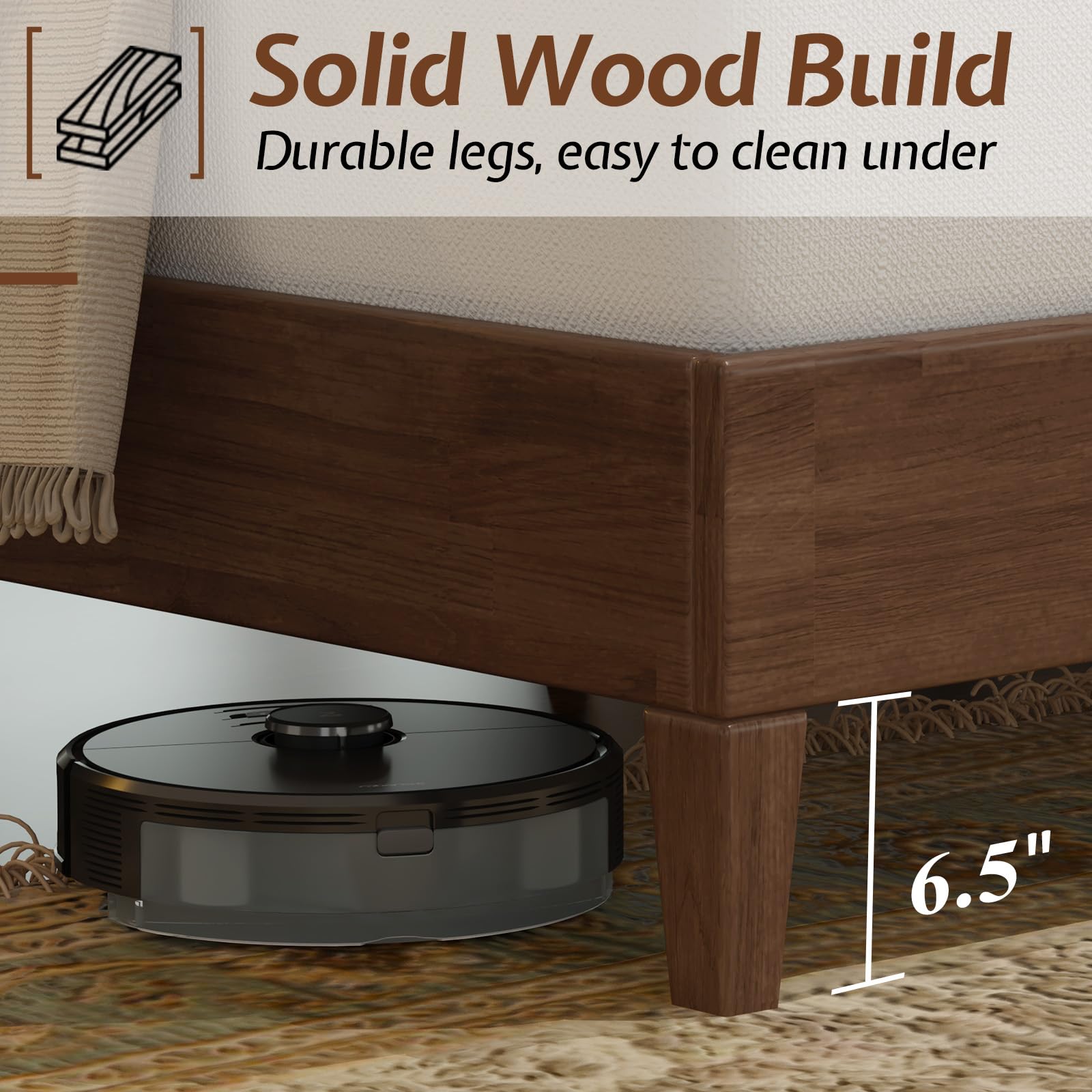 - Solid wood platform construction for superior durability