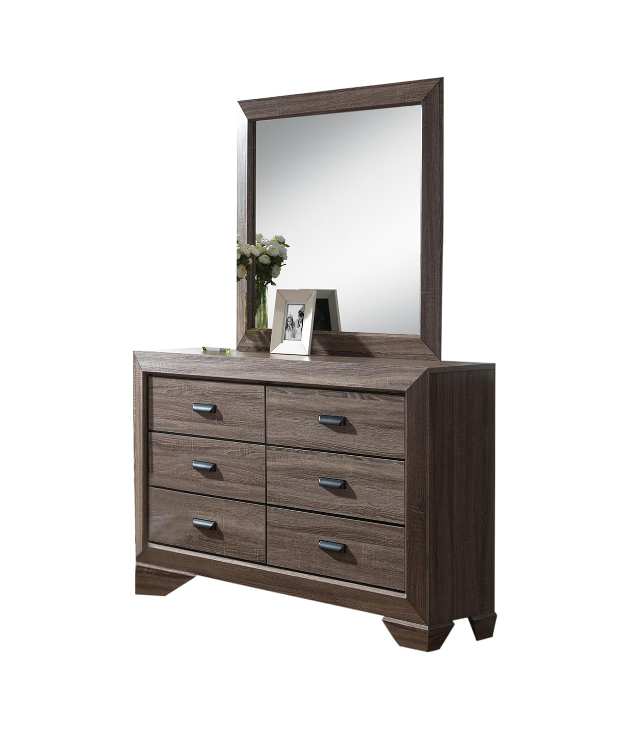 - Elevate your bedroom with this luxurious 6-piece set, including a queen headboard, footboard, rails, dresser, mirror, chest, and 2 nightstands.