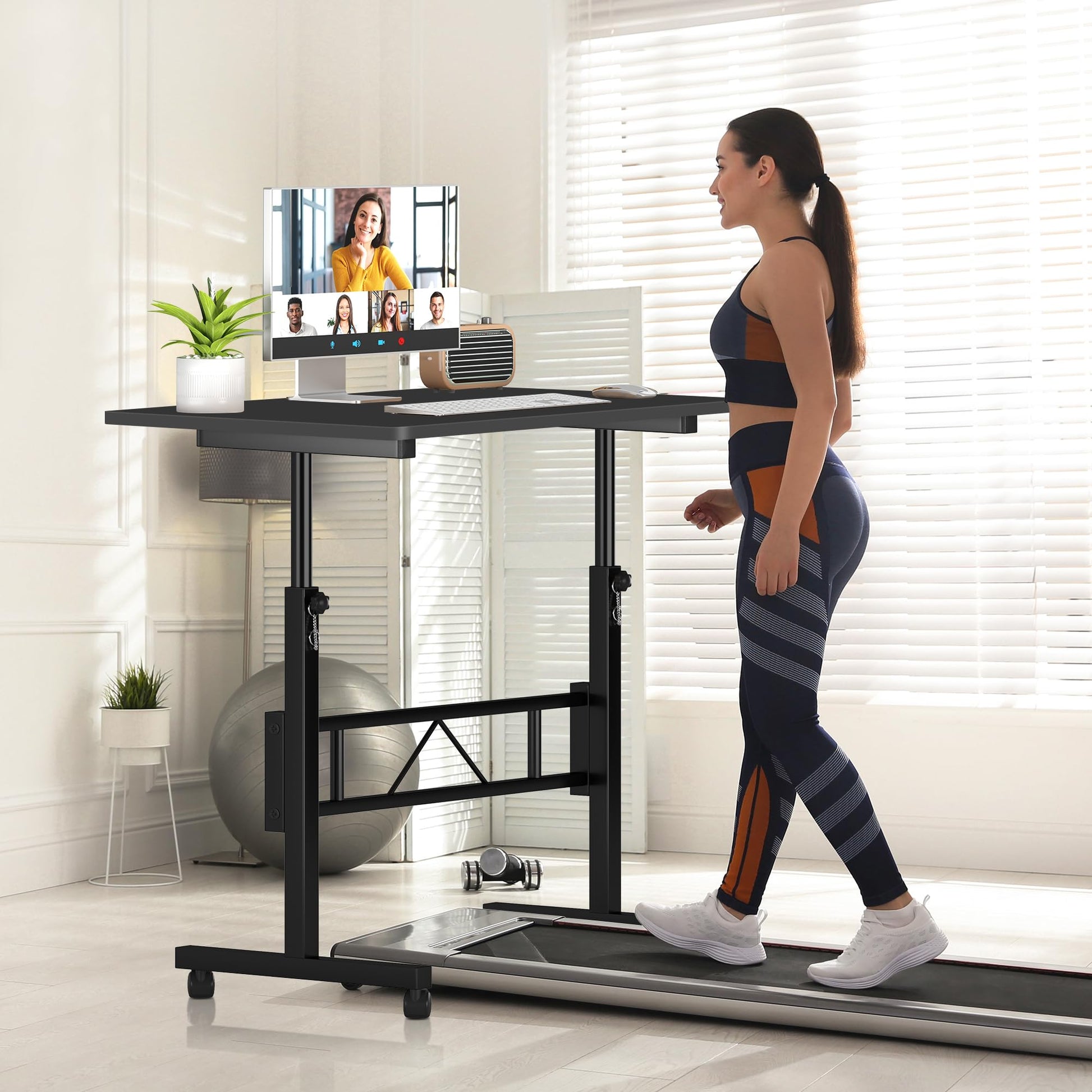 - 4 lockable wheels roll smoothly, making the mobile standing desk move wherever you want and move this portable office desk easily, it can be an over the walking pad desk, standing desk, traditional desk