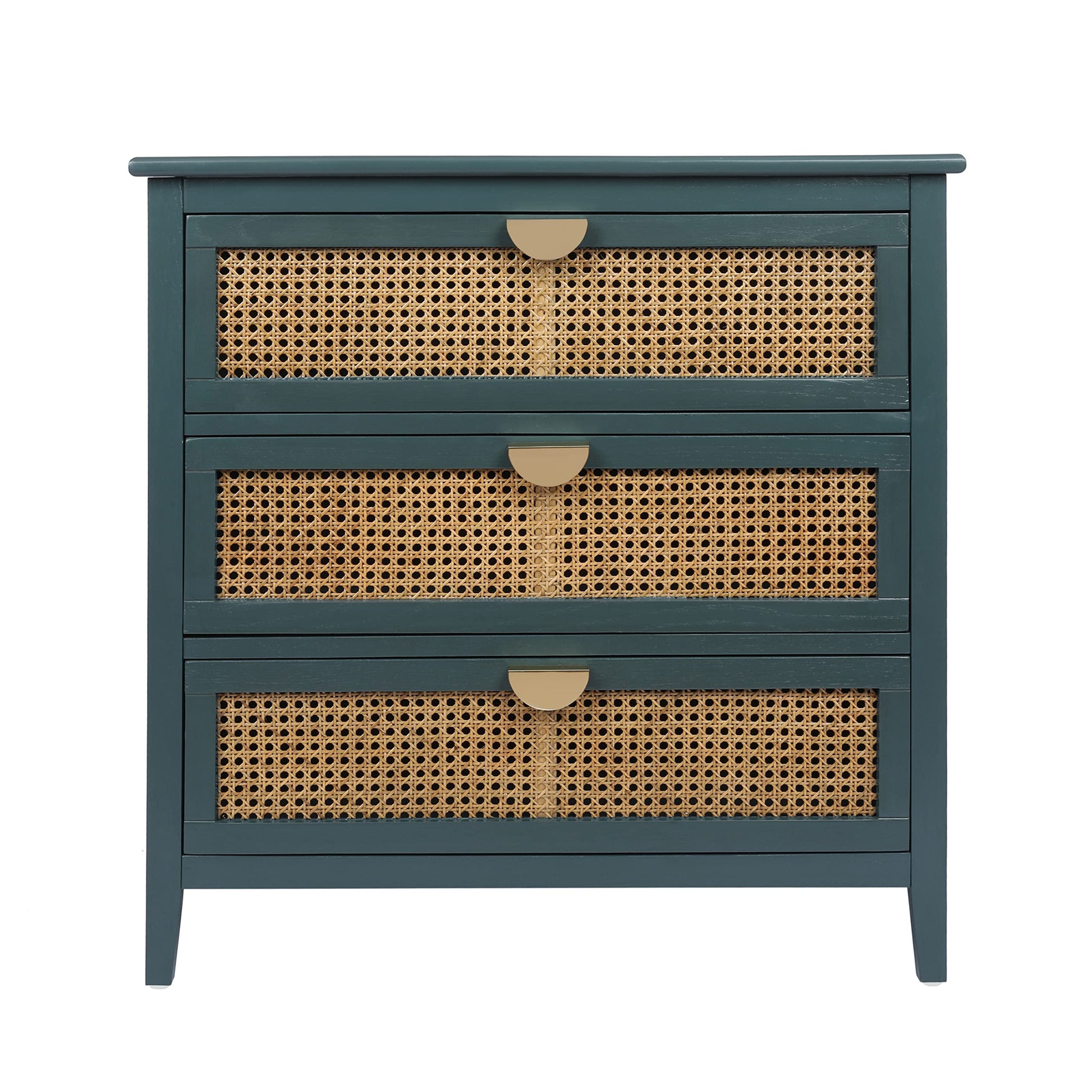 Rustic Nightstand Bedside Table with 3 Mesh Rattan Drawers, Entryway Chest of Drawers