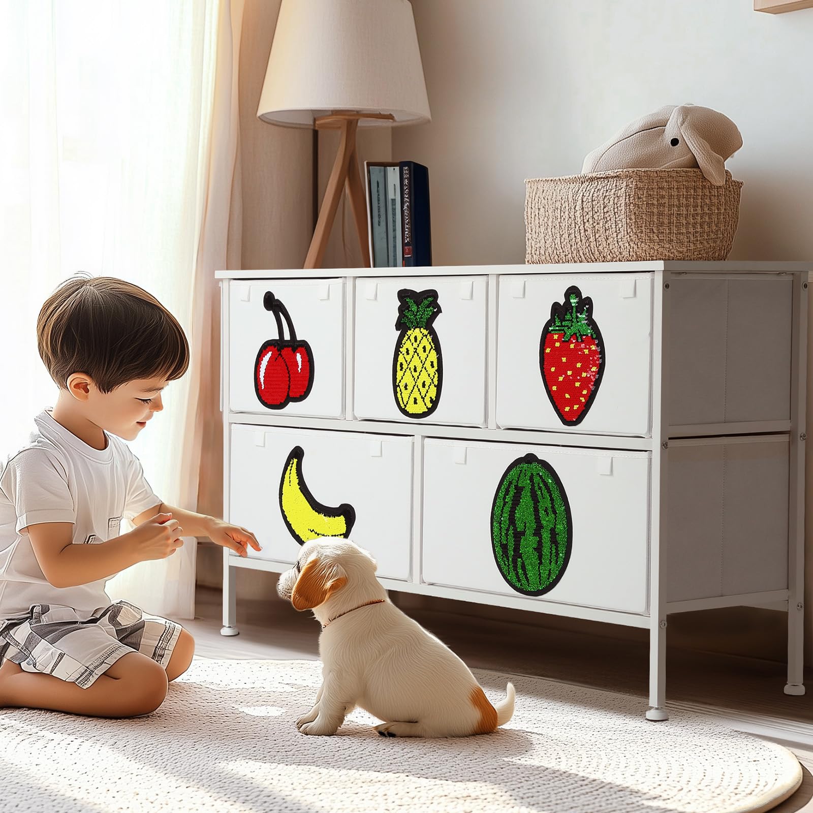- Funny Sequin Fruit Pattern Design: Our small dresser has various fruit pattern designs with sequins that can be flipped up and down. Flipping up and down can present fruit patterns of different colors, which is very fun. Your kids will like it so much. It makes your dull storage life becomes colorful and funny.