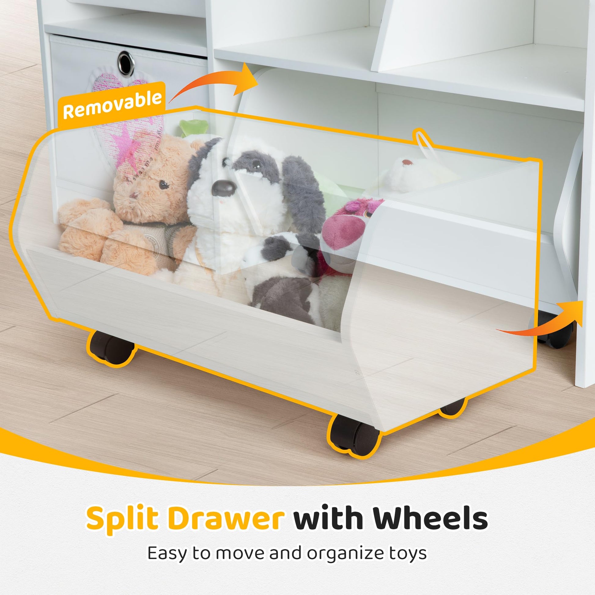 - Movable Storage Drawer Cabinet: Our kids bookshelf and toy organizer has one movable drawer with wheels. It allows your child to drag it anywhere effortlessly, encouraging childrens to put away toys by themselves.