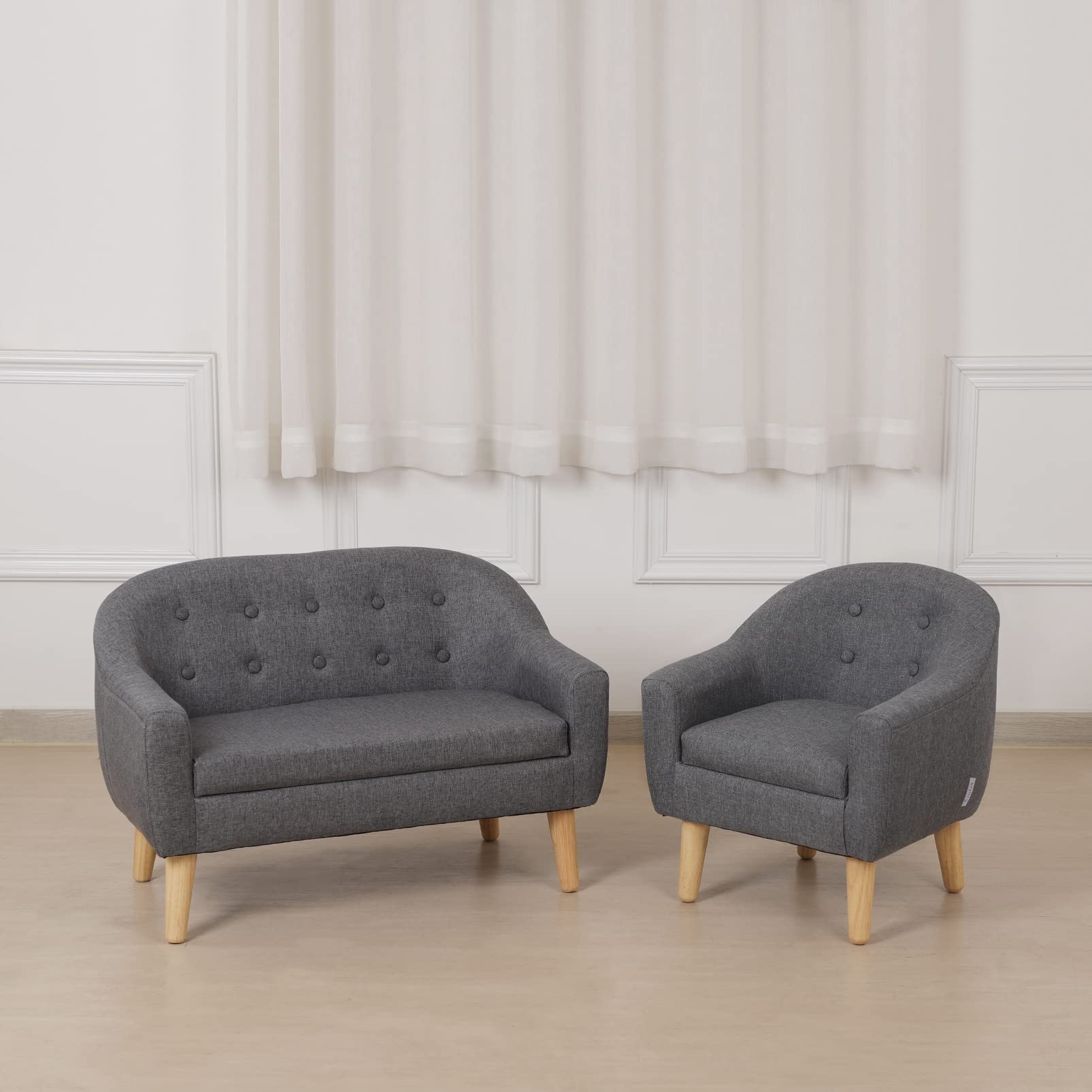 Toddler Sofa Chair/Kids Sofa Couch/Linen Fabric 2-Seater Upholstered Sofa Chair for Toddler Ages up to 4 / Baby Gift for Girls & Boys (30" W) (Gray)