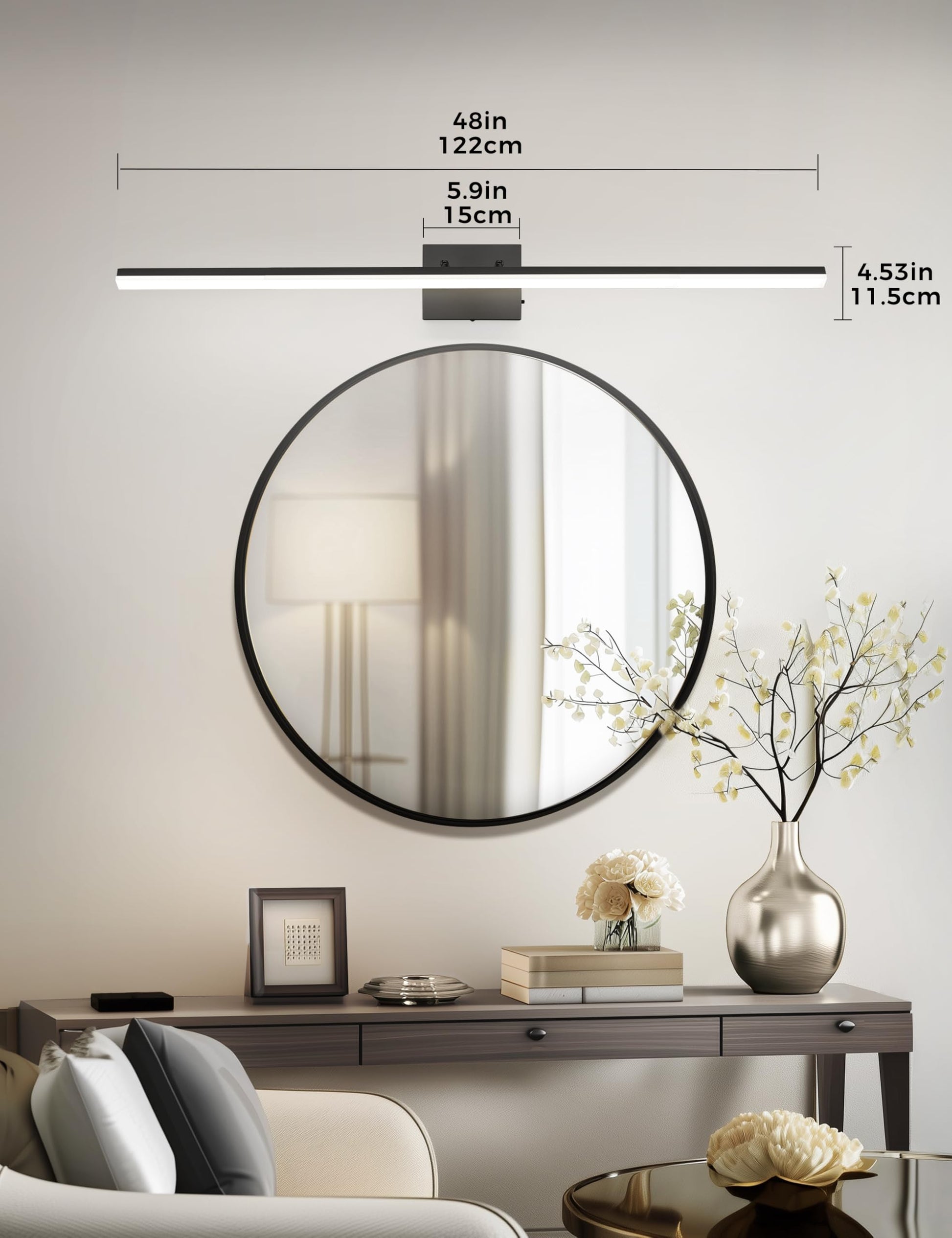 48-Inch Bathroom Vanity Light Bar Over Mirror, Matt Black Modern Bathroom Light Fixtures