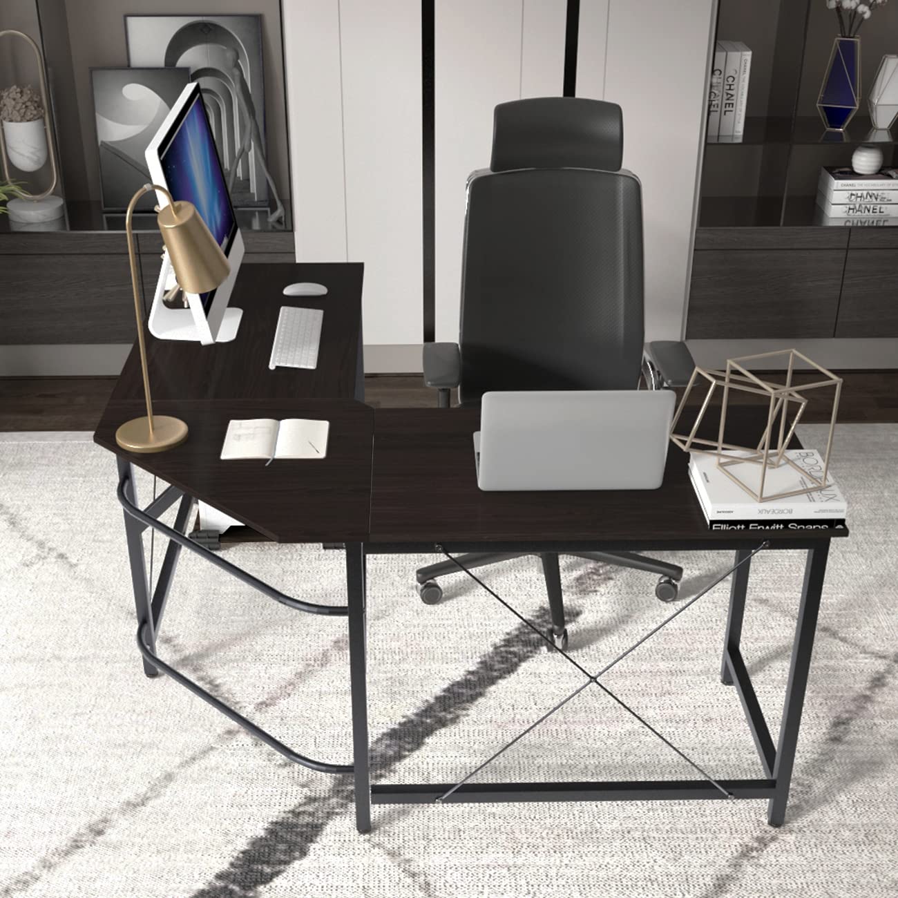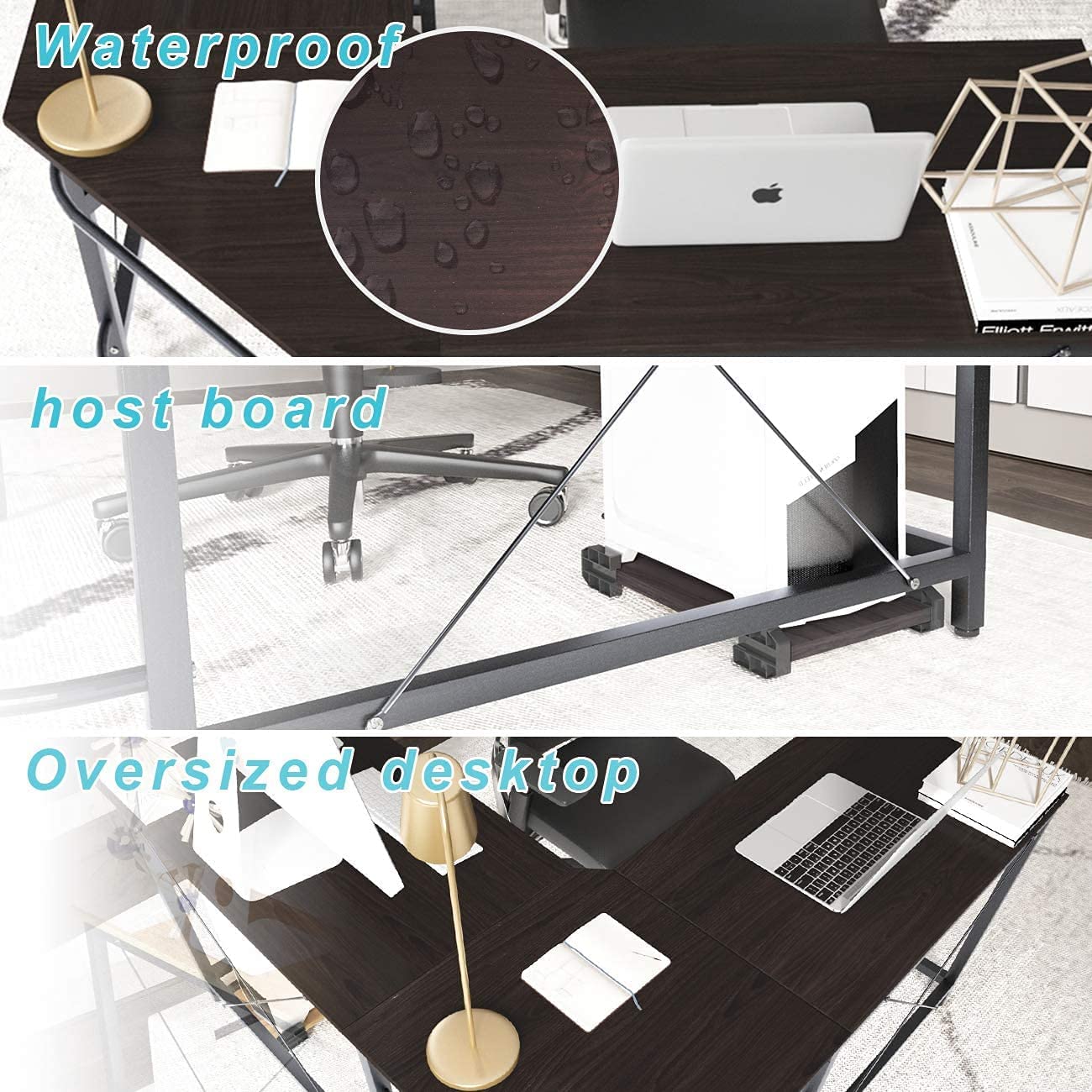 - 【L-Shaped Design】: Double Wide desktop of E1 degree solid particle wood with high resistance on scratch & friction, space saving, provide plenty space for writing, working, handcraft, gaming and other activities.