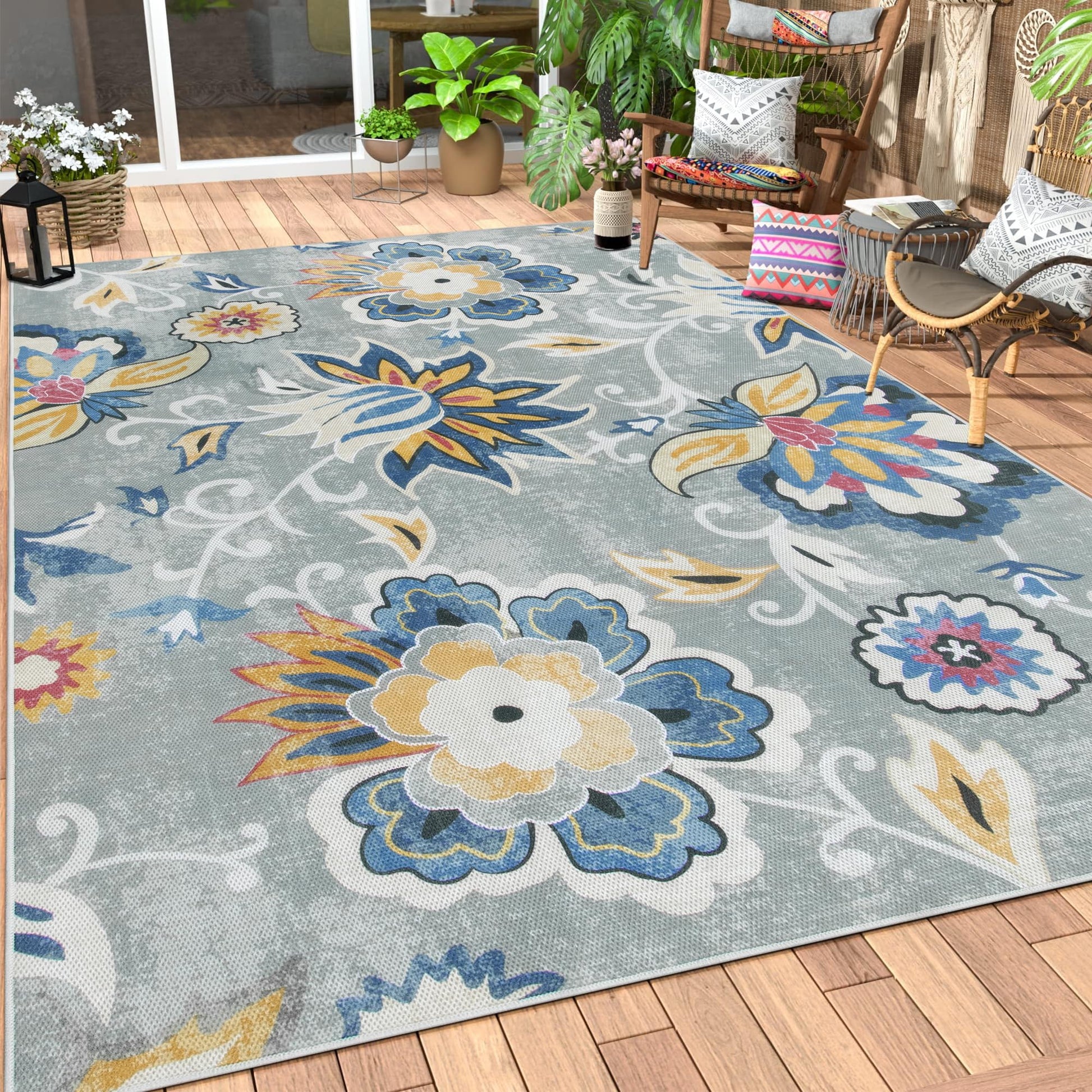 Floral Indoor Outdoor Rugs, 6x9ft Non Slip Outdoor Patio Rug for Balcony Deck, Soft