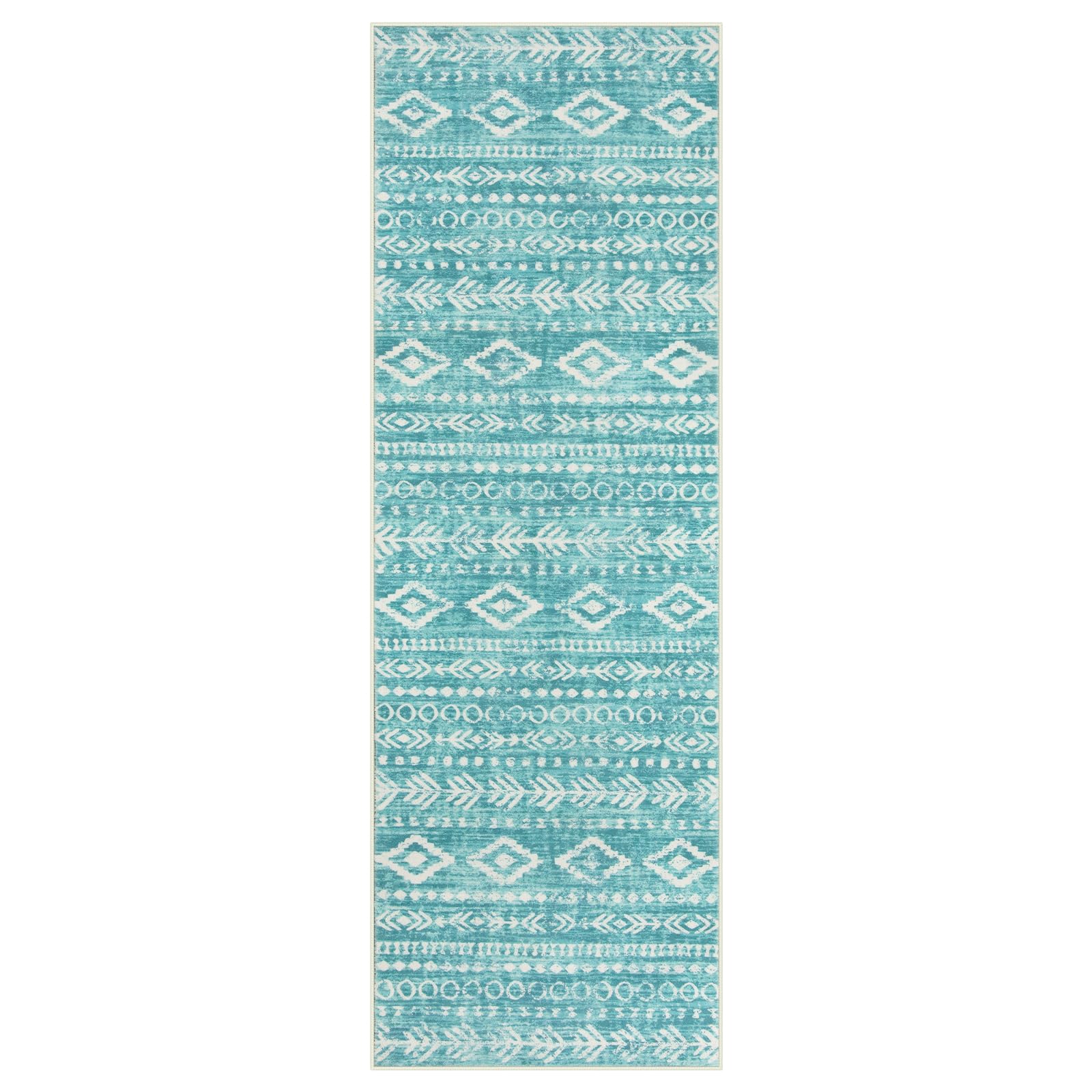 Lahome Moroccan Boho Bathroom Runner Rug,2x6 Teal Kitchen Runner Rug Non Skid Washable Hallway Runner 6ft,Low-Pile Soft Rug Geometric Indoor Carpet Runner for Entryway Laundry Room Bedroom