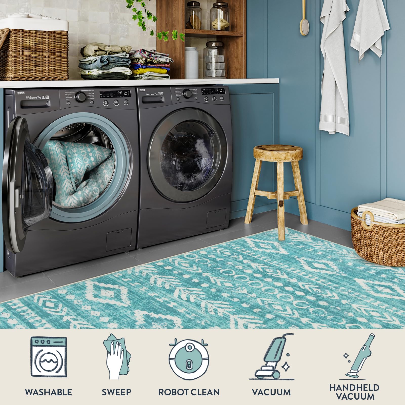 - [High Traffic Rustic Tribal Rug]: Our Lahome entryway runner rug with non-shedding,stain resistant surface and edge sturdy.So this rugs are perfect for entry,entrance,living room,bedroom,dining room,playroom,hallway,kitchen,and other high-traffic areas,each washable area rug can lay flat on every corner