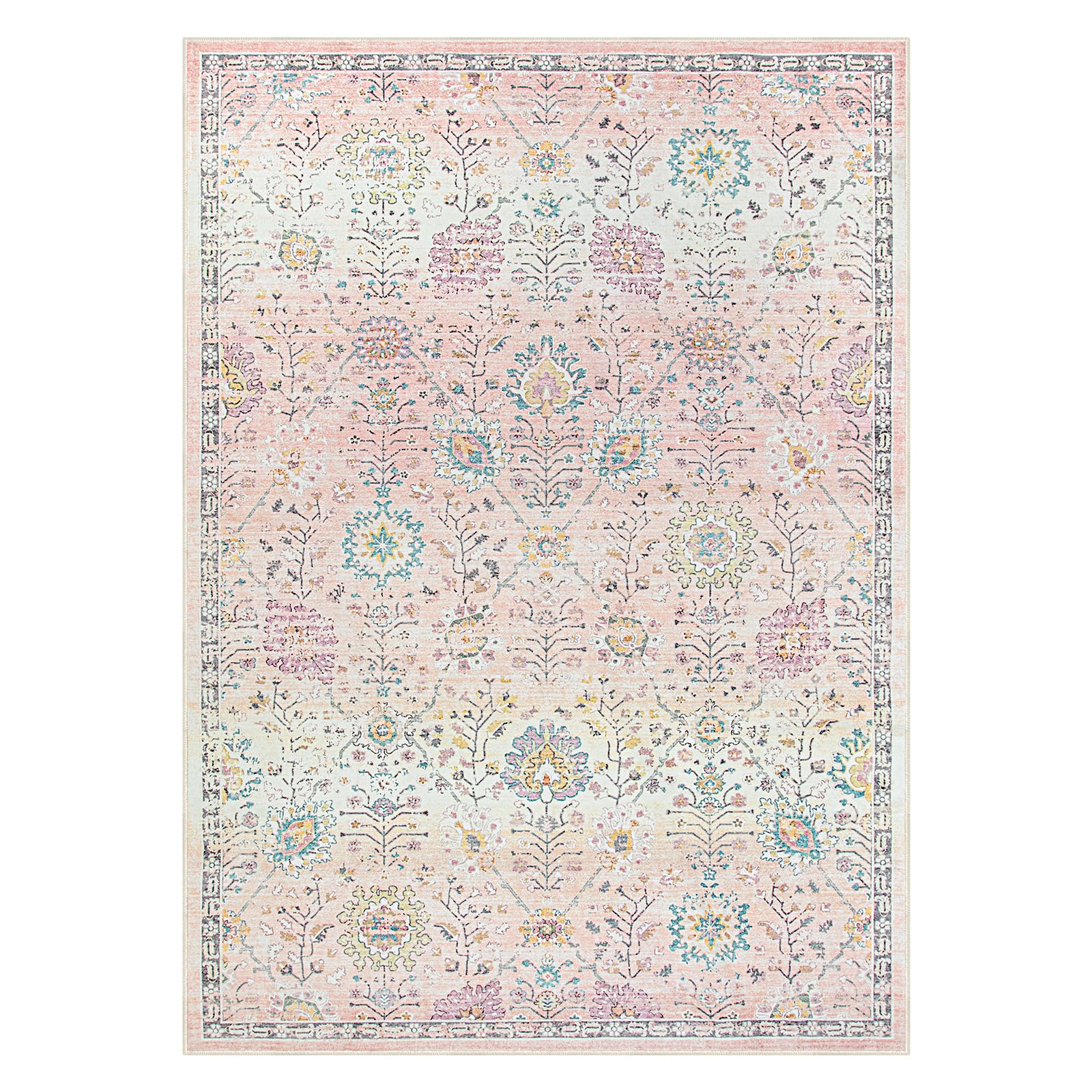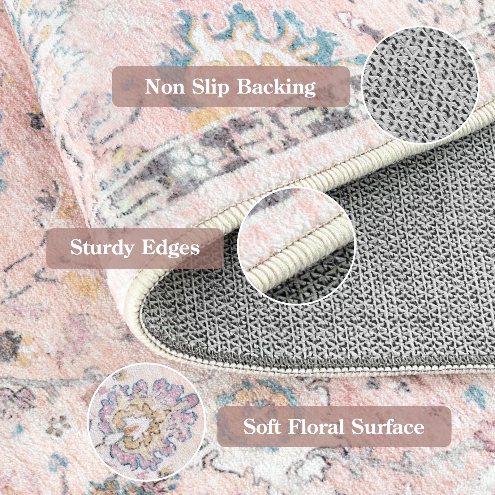 Pink Boho Area Rug, 5x7 Pink Rugs for Bedroom Girls Large Living Room Area Rugs Soft