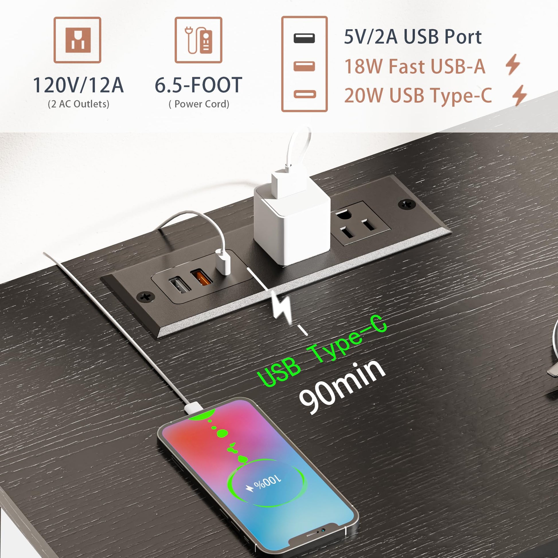 - Nightstands Set Of 2 With Charging Station This end tables bedroom set of 2 includes built-in 2 AC outlets(1500w 12a)and 3 USB ports (1 X USB-C, 2 X USB-A ). Say goodbye to charging anxiety as you effortlessly access fast charging interfaces, while a separate wire connects your light without occupying any charging station ports. Energy is always at your fingertips!