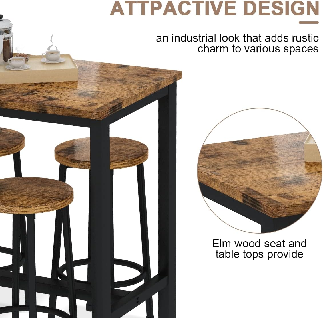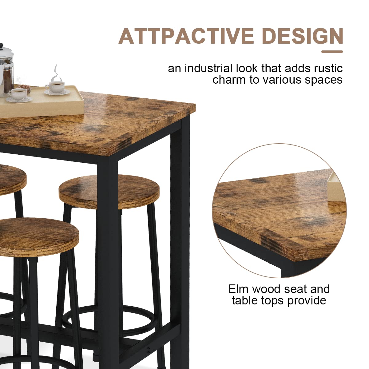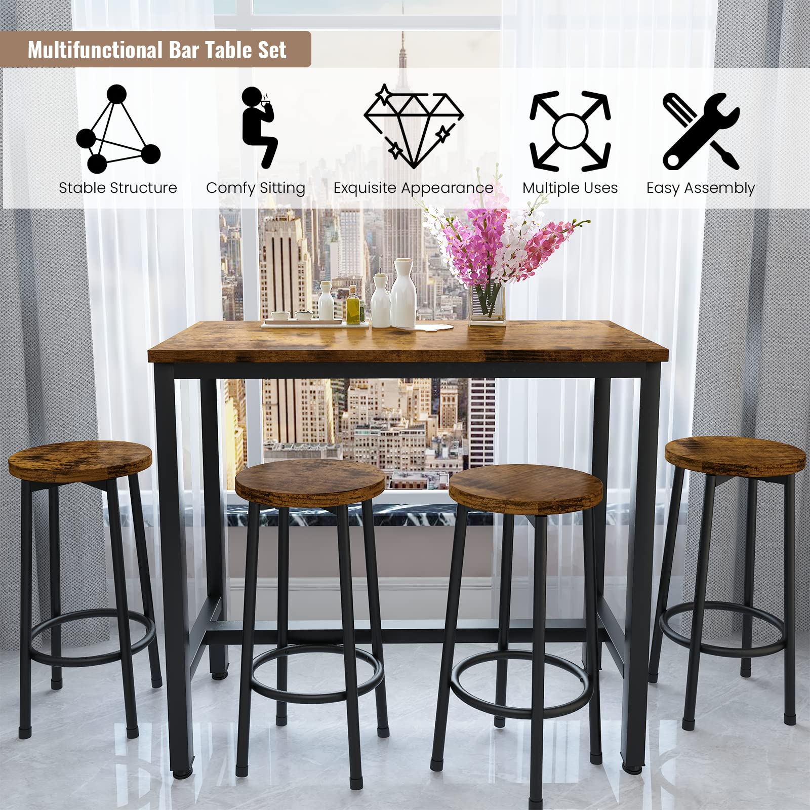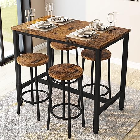 Bar Table Set,Industrial Bar Table and Chairs Set,5 Pcs Dining Table Set Counter