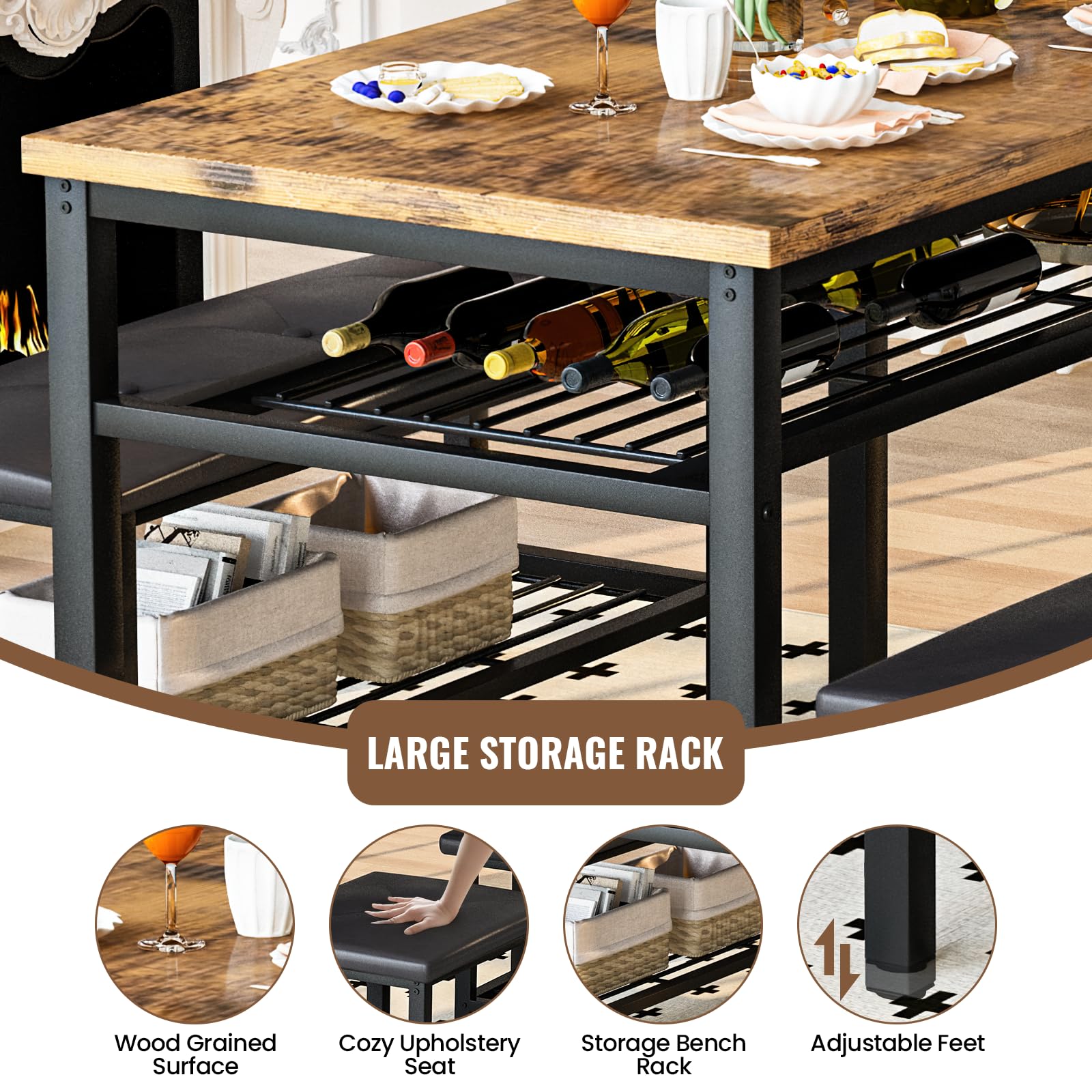 Kitchen Tables Set for 4, Rectangular Dining Room Table Set with Bench and Stools, 4