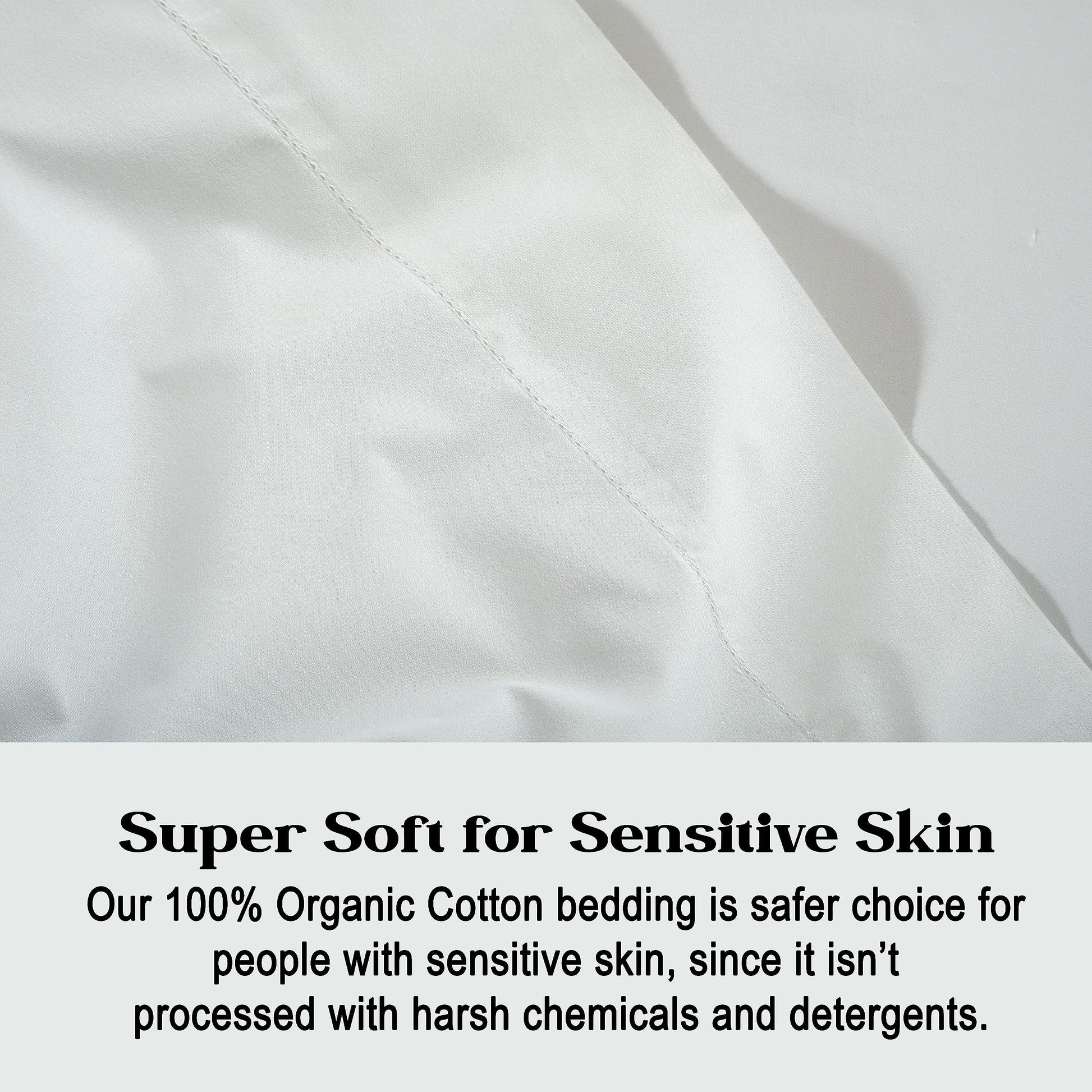 100% Organic Cotton Pure White Full Sheets Set 4-Piece Long Staple Percale Weave