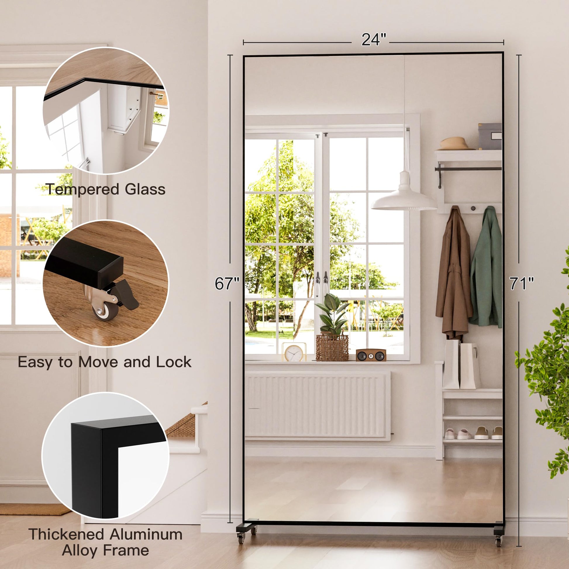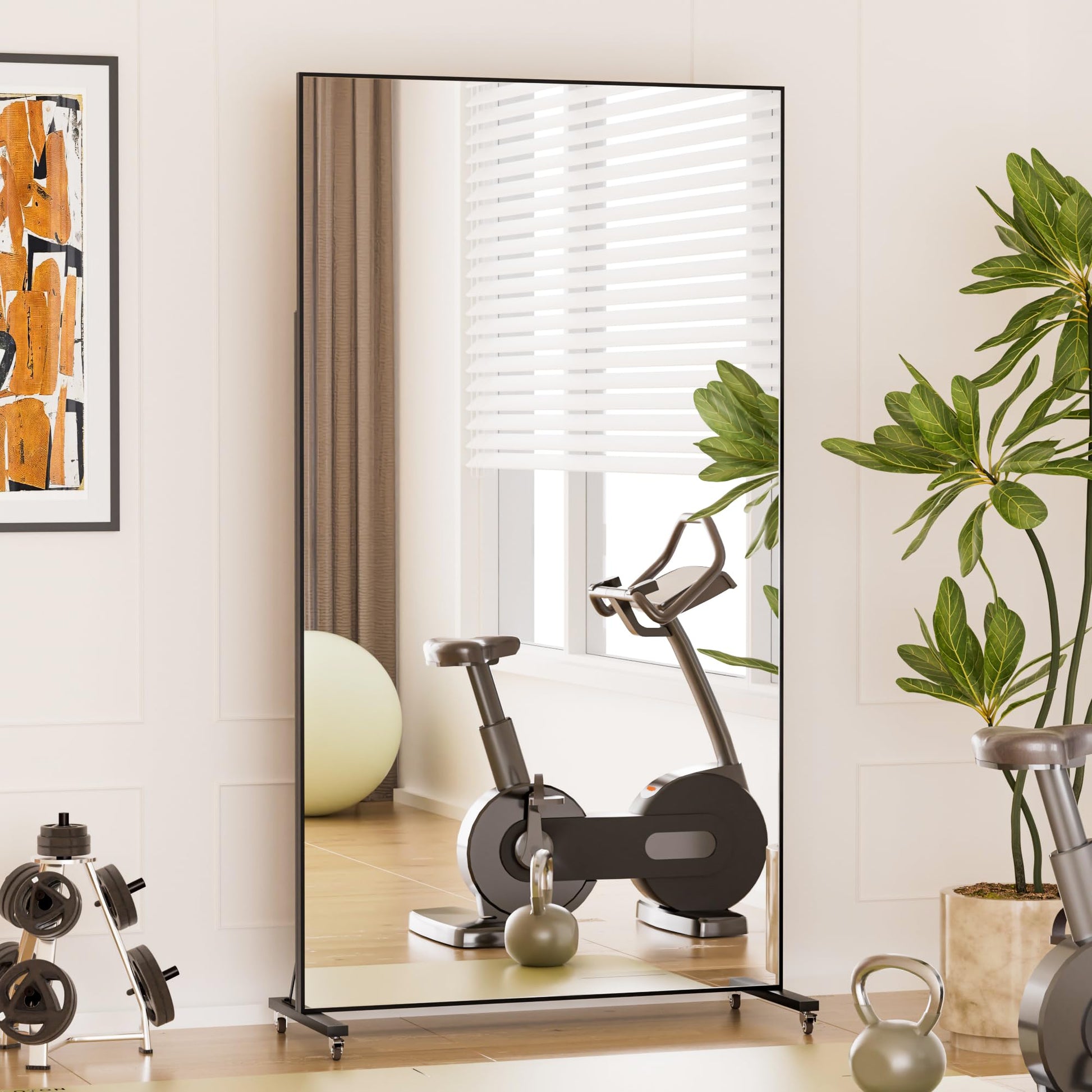 Transform your space with this professional-grade full-length rolling mirror, designed for gyms, dance studios, yoga rooms, and home use. Featuring shatterproof tempered glass and smooth-rolling mobility, this mirror combines safety, functionality, and elegance.