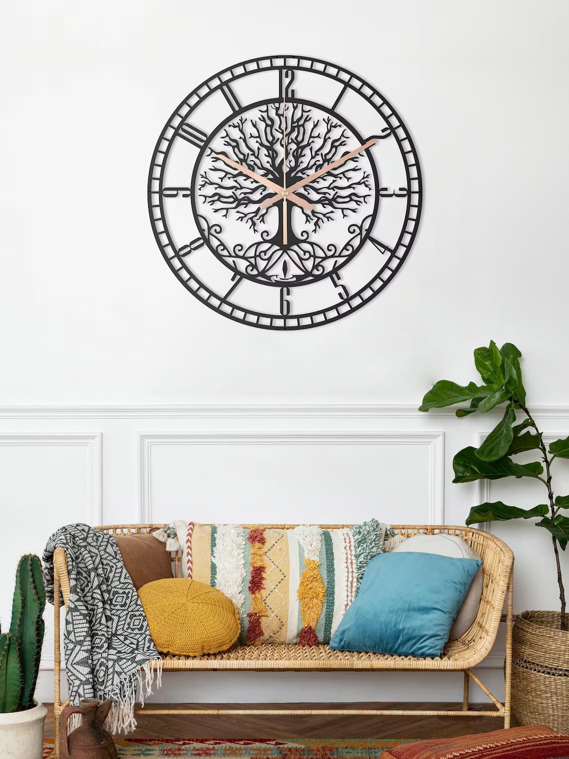 Large Tree of Life Clock, Metal Black Wall Clock, Oversized Wall Clock Home Decor,
