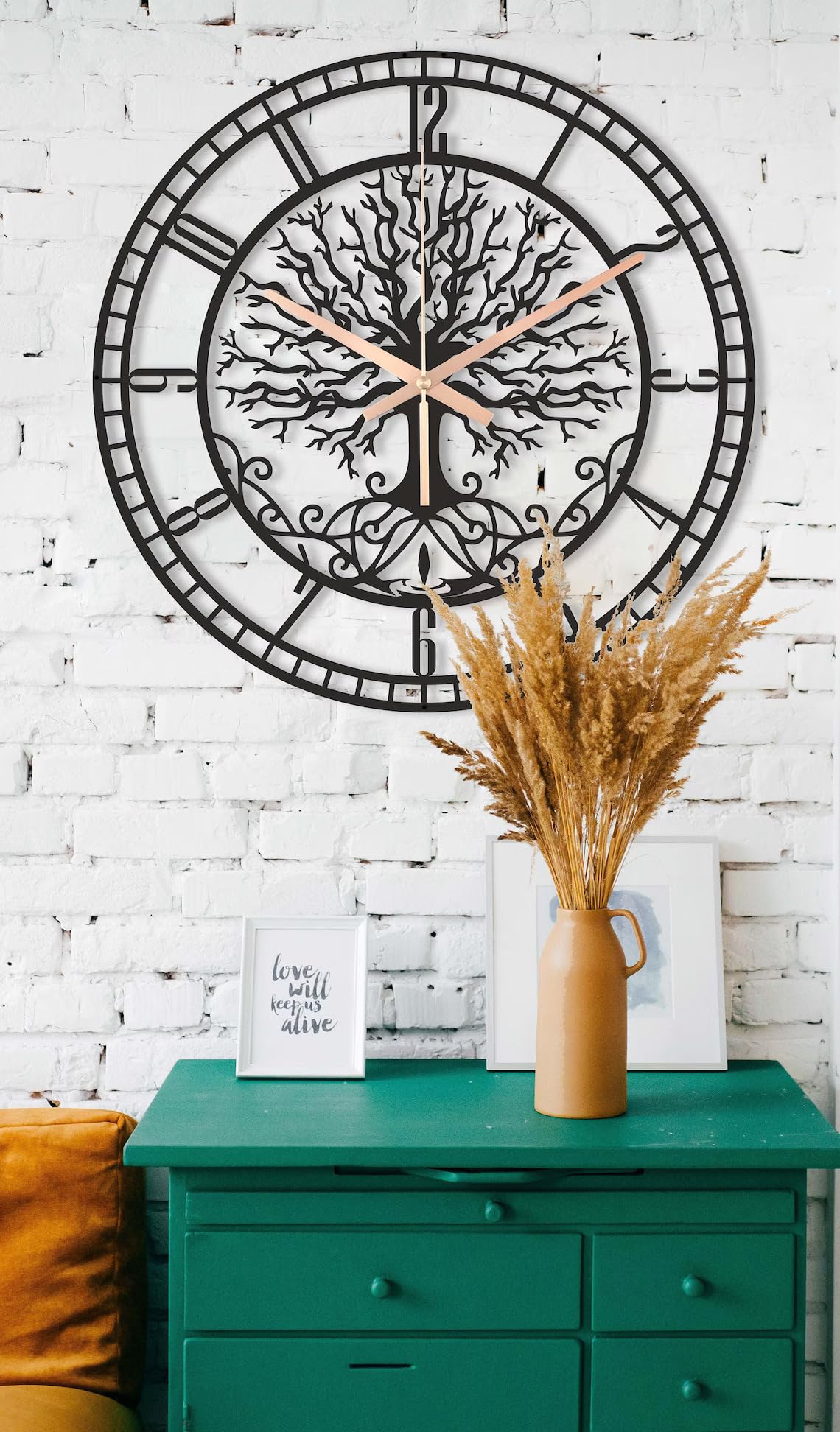 - Stunning Tree of Life Design Immerse your living space in the beauty of nature with our Large Tree of Life Clock, featuring an intricate and captivating design that serves as both a timekeeping device and a striking piece of wall art.