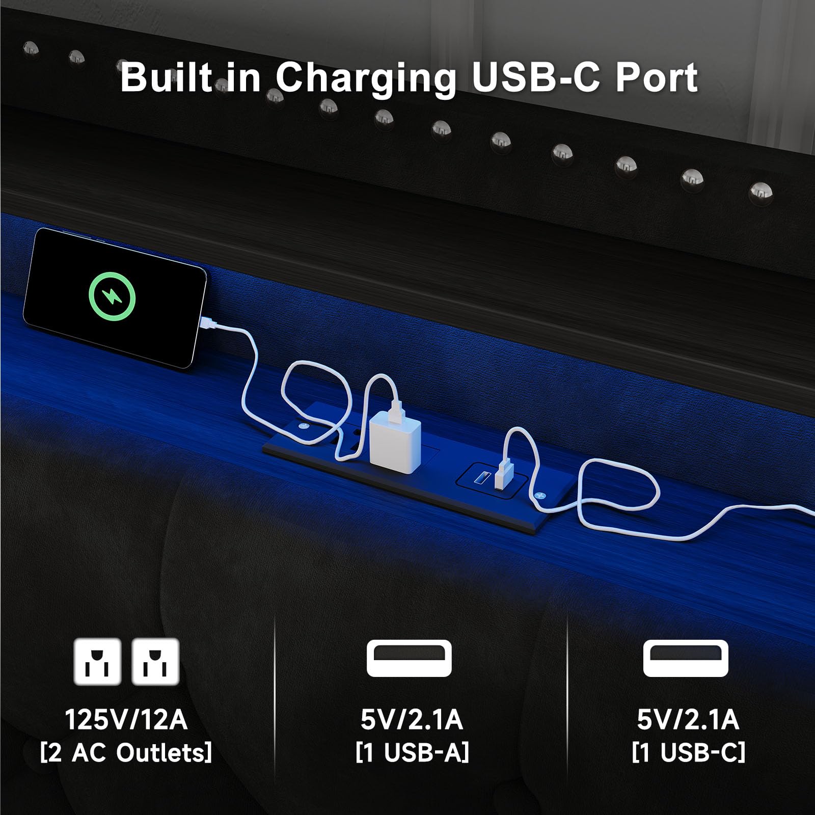 - 【Convenient Charging Station】 The LED queen size bed frame with its built-in outlet and two USB ports can make you easily charge the devices while in bed