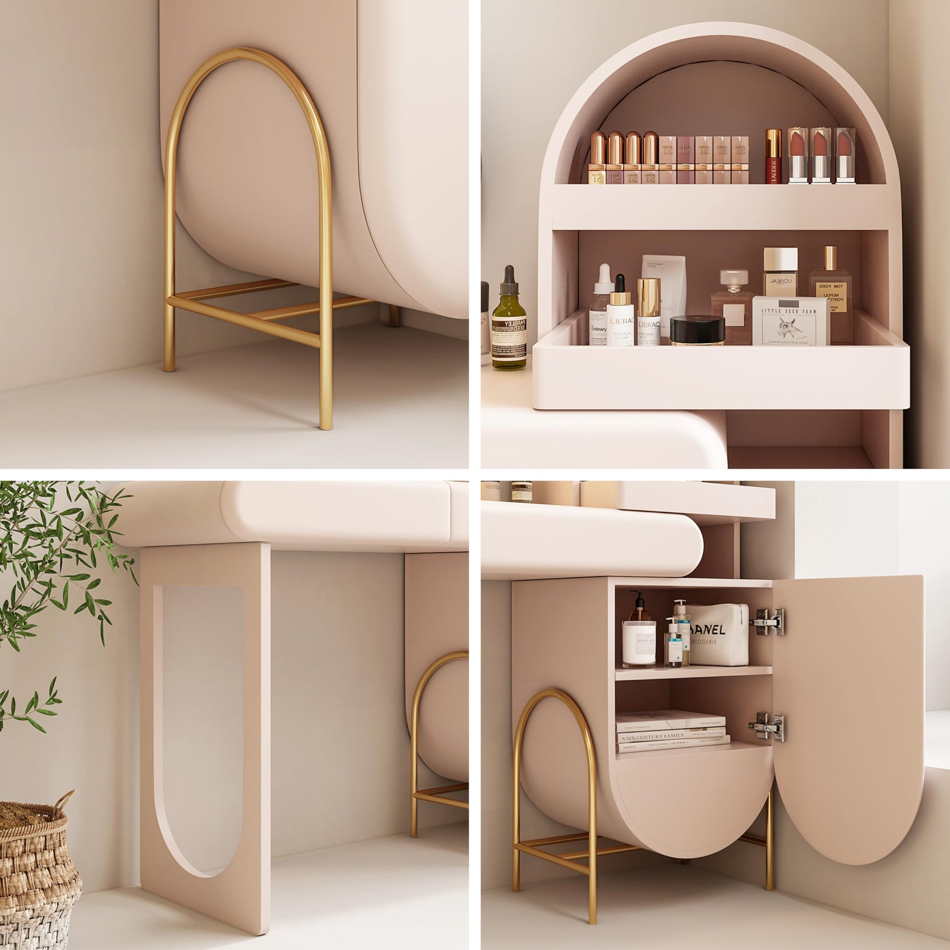 - This vanity table comes in a charming skin pink color tone, adding a touch of style and vitality to your bedroom or dressing room.