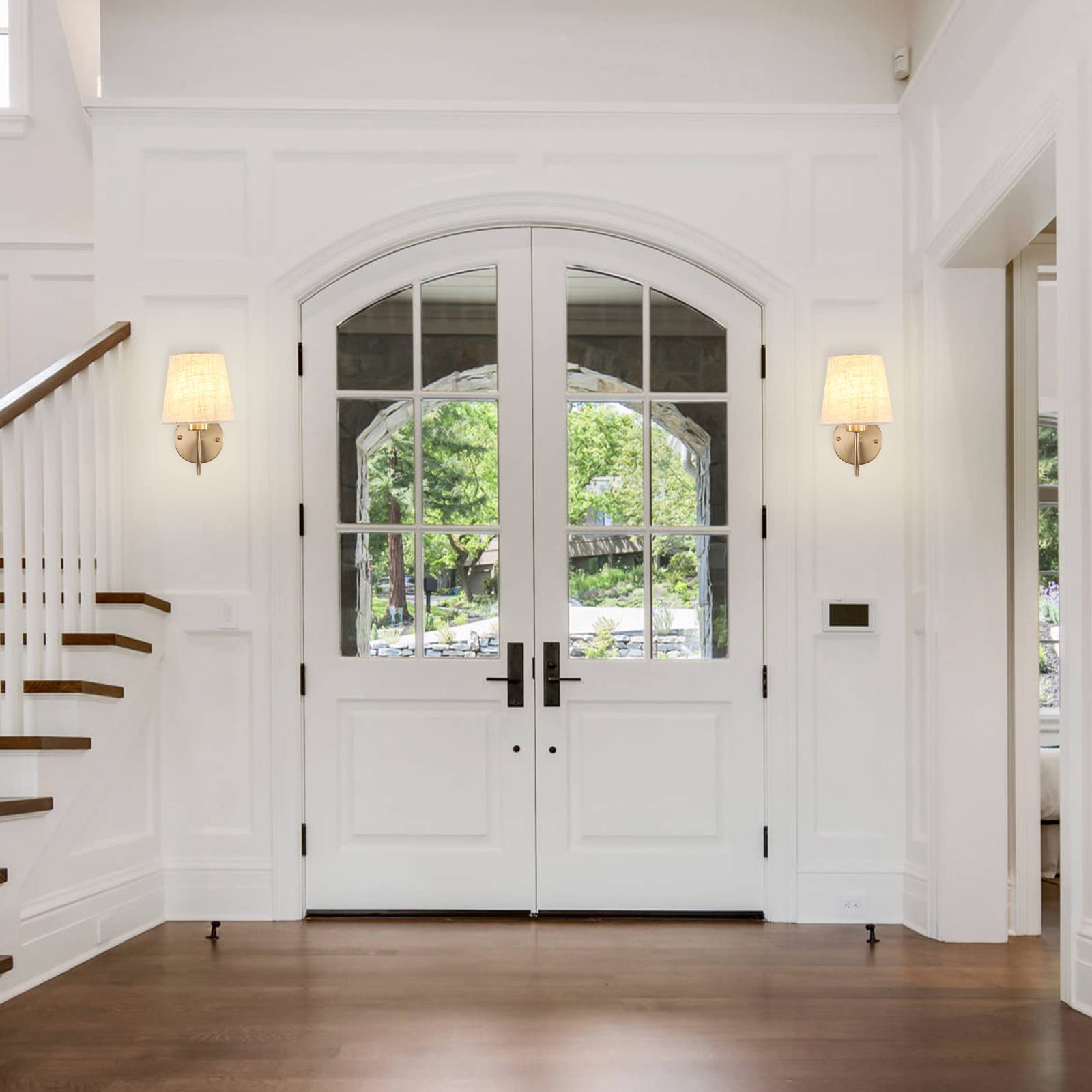 - [Wall Scones, Wall Lights Set Of 2] The wall sconce light adopts a candelabra lamp holder with smooth curve arms in gold finish, matching with a linen beige fabric lampshade, balancing simple modern industrial lines with traditional charm. Anti-rust painted process making this gold wall mounted lamp provide long-term durability.