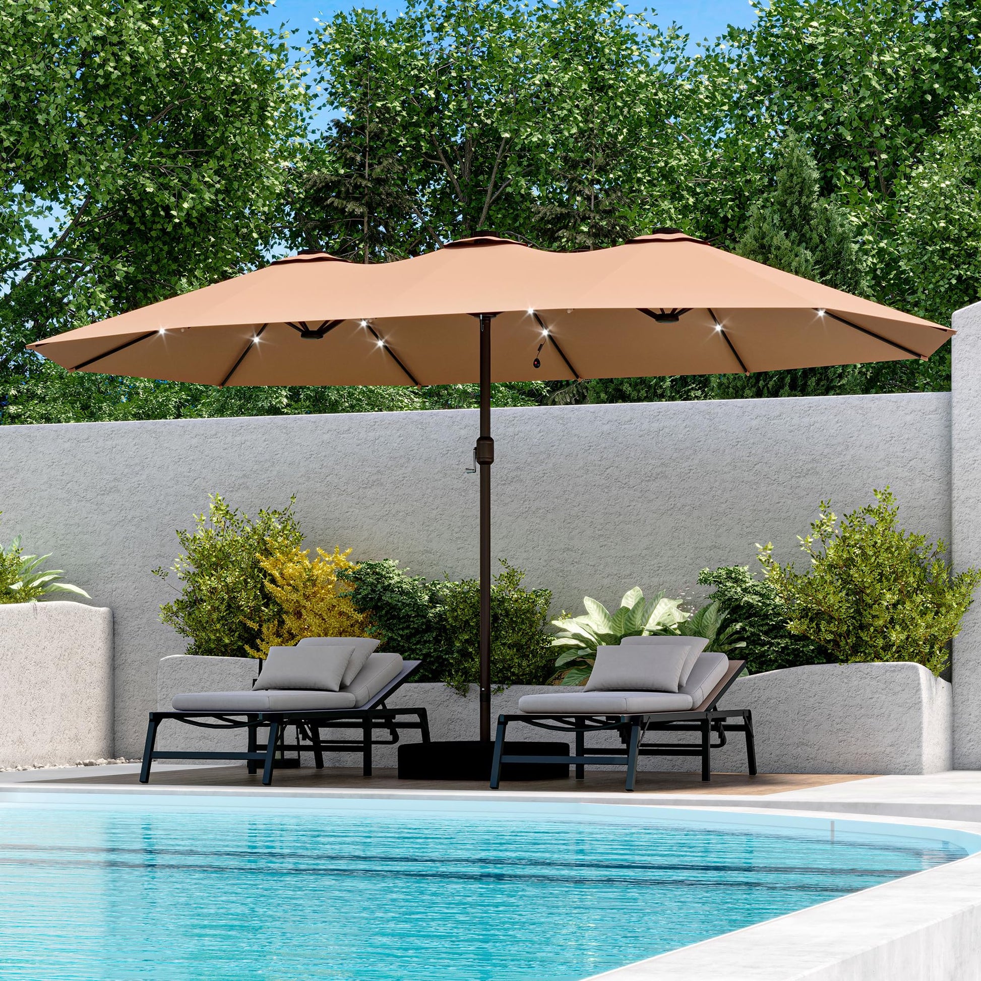 15ft Large Patio Umbrella with Solar Lights, Double-Sided Rectangle Outdoor Umbrella