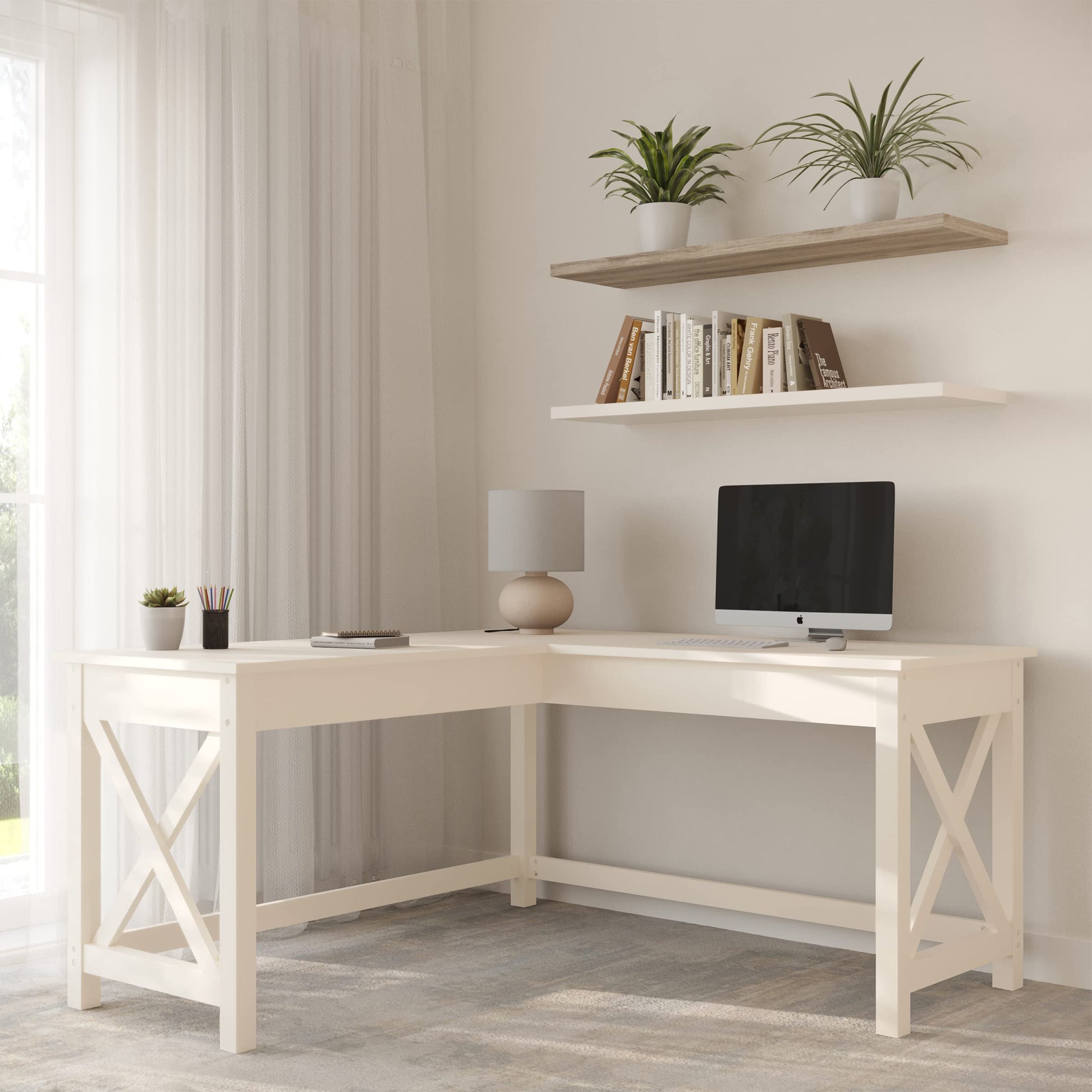 - L-SHAPE DESK - The corner design, X-pattern support legs, and beautiful woodgrain-look of this office desk bring functionality and traditional style to your home. The neutral color of the L desk is sure to complement a variety of décor styles.