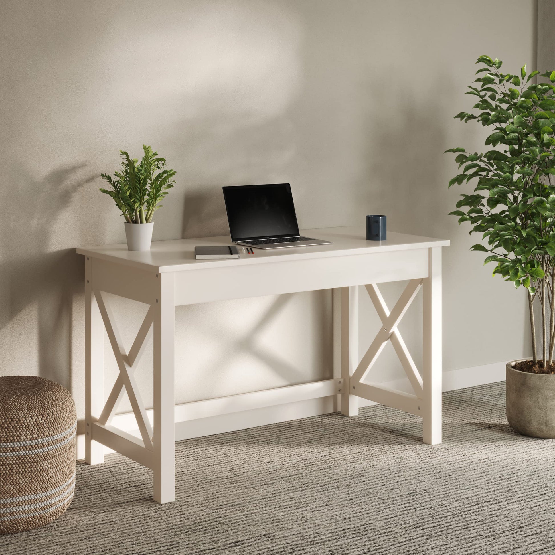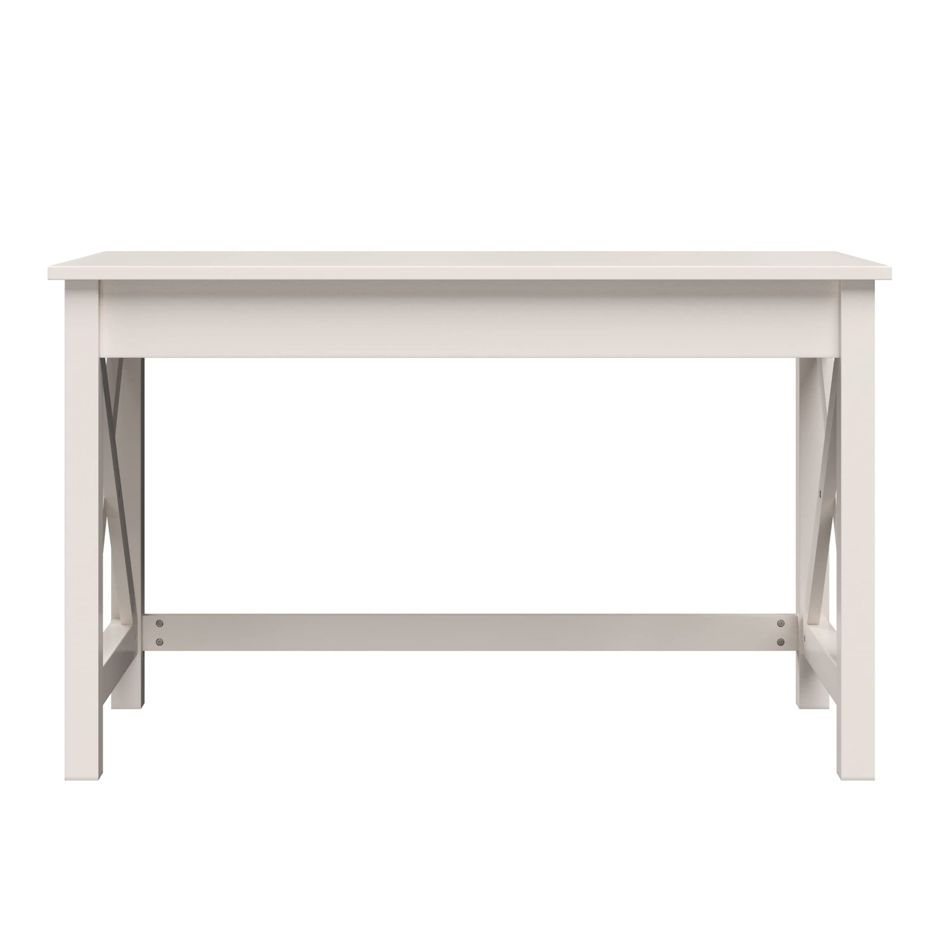 - HOME OFFICE DESK - The clean lines, X-pattern support legs, and beautiful painted white finish of this office desk bring functionality and traditional style to your home. The neutral color of the desk is sure to complement a variety of décor styles.