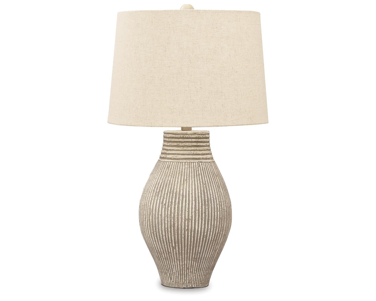 Transform your living space with this sophisticated 29-inch table lamp featuring a beautifully carved base and textured paper shade. The warm beige finish adds a casual elegance that complements both traditional and contemporary interiors, creating an inviting ambiance in any room.